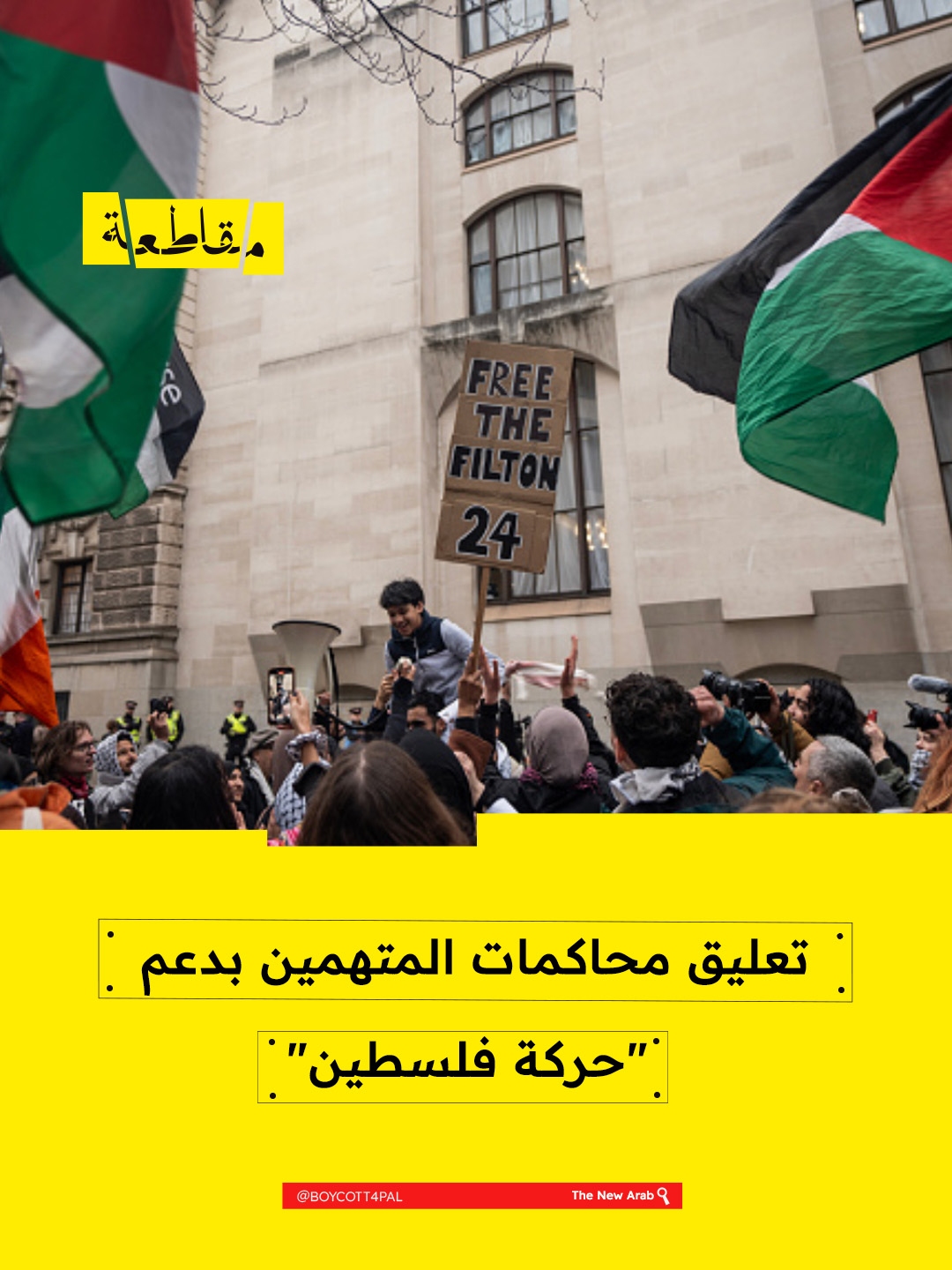 أصدرت محكمة وستمنستر الجزئية في لندن قرارًا بتعليق جميع المحاكمات المتعلقة بالمتهمين بدعم "حركة فلسطين"، مع تحديد موعد لمراجعة شاملة لجميع القضايا في 30 يوليو/تموز. جاء القرار بعد أن قضت المحكمة العليا الشهر الماضي بعدم قانونية حظر الحكومة للحركة، رغم منح الحكومة حق الاستئناف.
