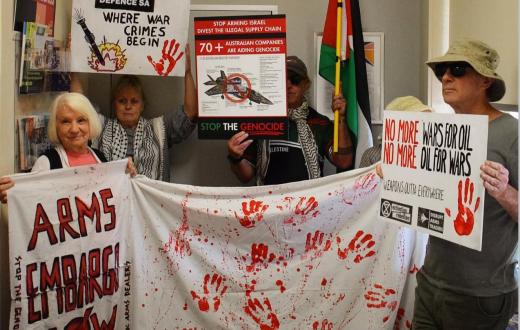 تجمعت مجموعة من الأفراد المستقلين، اليوم الخميس 5 مارس، لإغلاق مدخل حيوي مخصص للشاحنات في ميناء سوانسون الشرقي والغربي في ملبورن، ضمن ما يُعرف بميناء Port of Melbourne، وذلك احتجاجًا على دور الميناء في تصدير مواد عسكرية تُستخدم في الحروب .