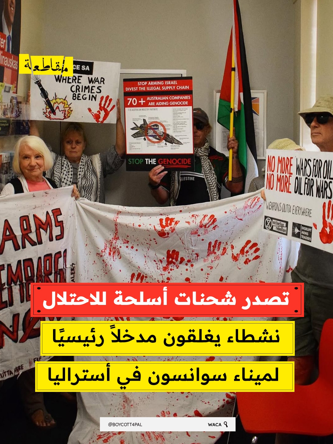 تصدر شحنات أسلحة للاحتلال نشطاء يغلقون مدخلًا رئيسيًا لميناء سوانسون في أستراليا