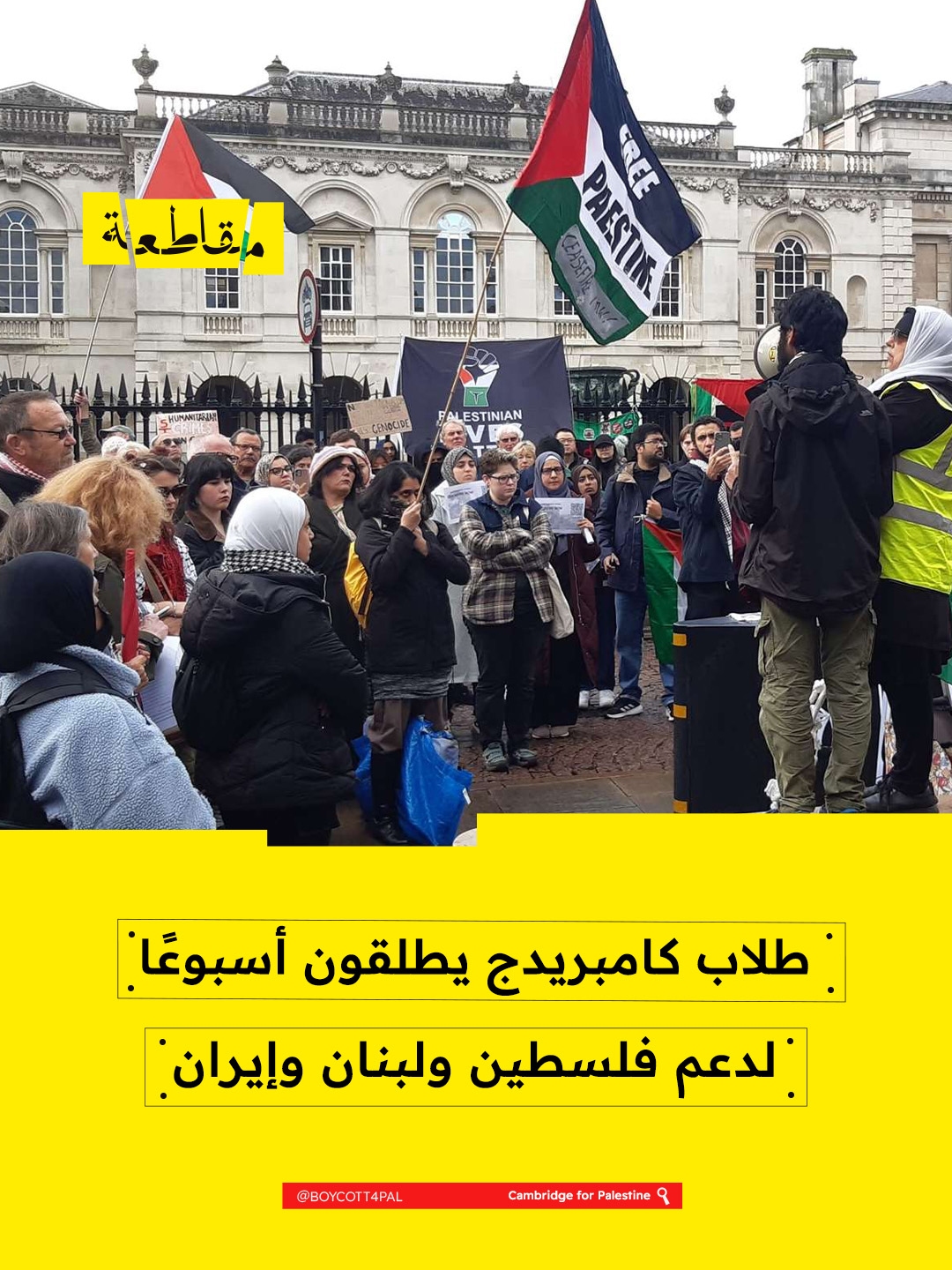 دعت مجموعة طلاب كامبريدج من أجل فلسطين مجتمع جامعة كامبريدج إلى المشاركة في سلسلة فعاليات تضامنية خلال الأسبوعين الأولين من شهر مارس، في إطار حراك طلابي يهدف إلى تنظيم المجتمع الجامعي ضد الاستعمار الصهيوني وتعزيز التضامن مع فلسطين ولبنان وإيران والمنطقة.