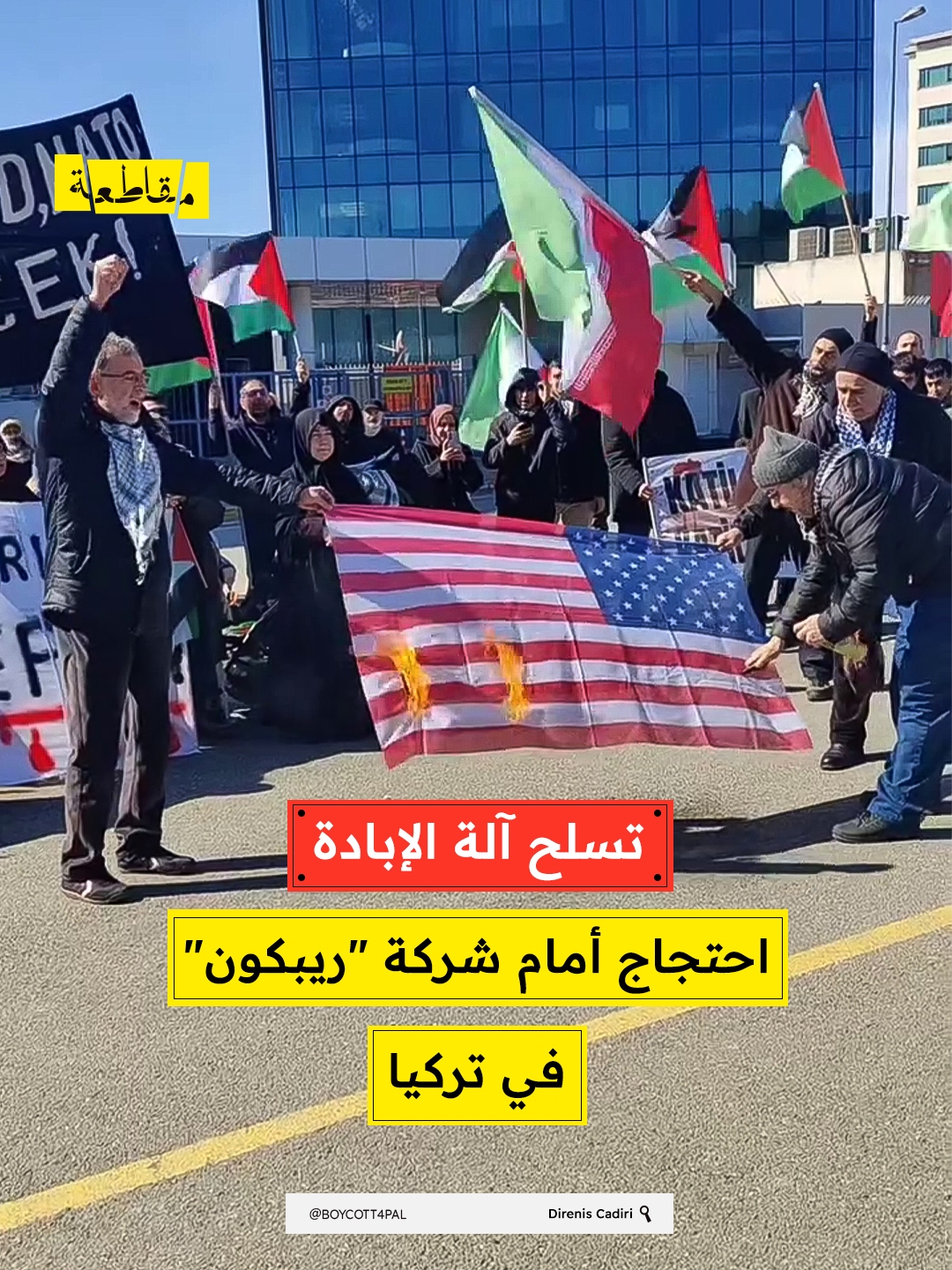 تظاهر أنصار فلسطين أمام مكتب شركة "ريبكون" للدفاع في تركيا، مطالبين بوقف تعاملات الشركة مع صنع وإنتاج ذخائر تُستخدم في حرب الإبادة الإسرائيلية.