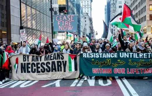 شهدت مدينة نيويورك اجتماعًا جماهيريًا حاشدًا لنشطاء ومتطوعين داعمين للقضية الفلسطينية، نظمته حركتا Shut It Down for Palestine وICE Out of NY، في ظل تصاعد الدعوات داخل الولايات المتحدة الأمريكية لزيادة الضغط الشعبي والسياسي لوقف حرب الإبادة على قطاع غزة ودعم حقوق الشعب الفلسطيني.