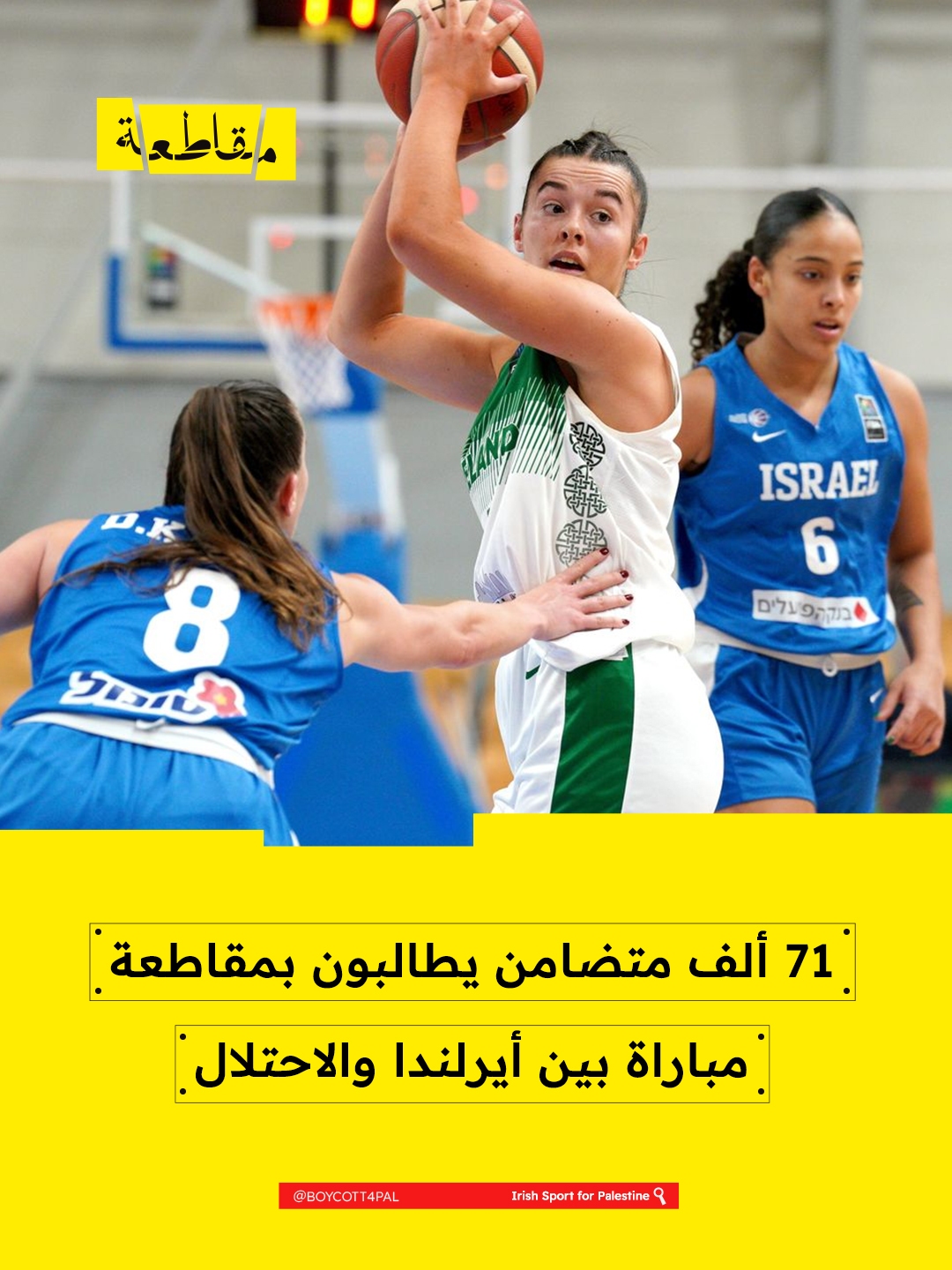 دعت مجموعة الرياضة الأيرلندية من أجل فلسطين إلى مقاطعة مباراة كرة السلة بين أيرلندا و”إسرائيل”، المقررة في عيد القديس باتريك في ريغا، لاتفيا، معتبرة أن “إسرائيل” دولة إرهابية وأن مشاركة اتحادها لكرة السلة يخالف مبادئ العدالة الرياضية.