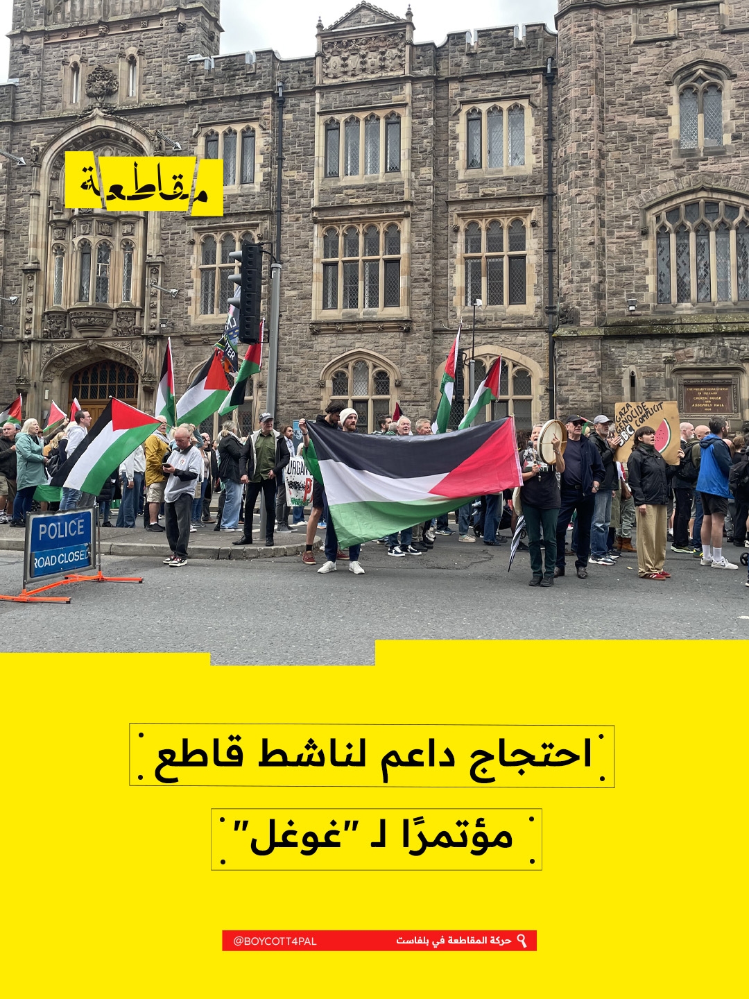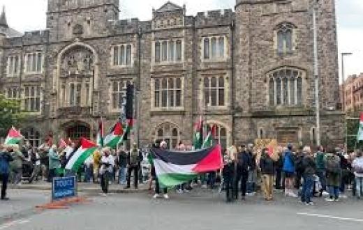 نظّم ناشطون من حركة المقاطعة في مدينة بلفاست وقفة احتجاجية تضامنًا مع ناشط اعتُقل قبل أسبوعين خلال تحرك احتجاجي ضد شركة غوغل أثناء مؤتمر "غوغل إنجيج".