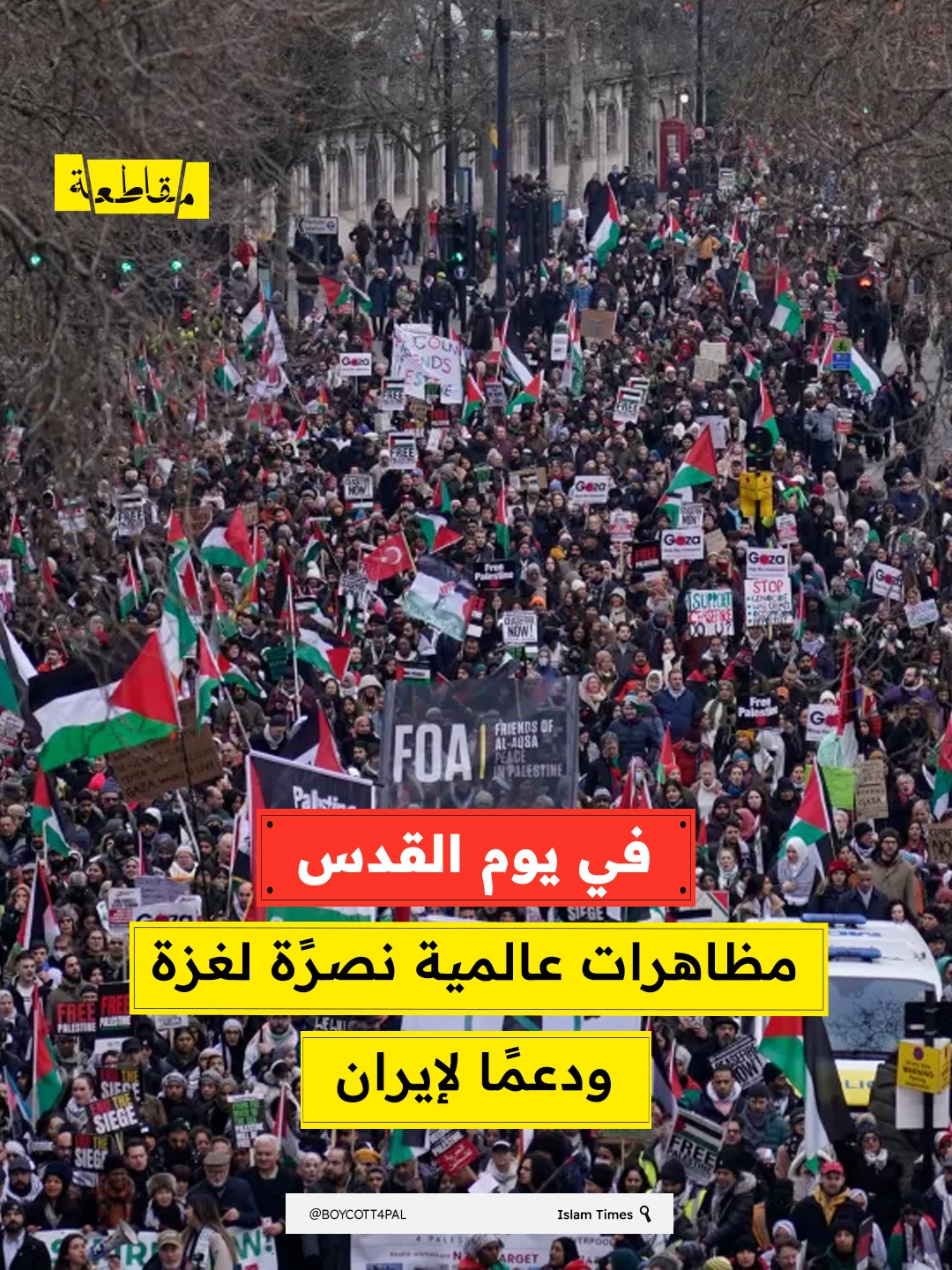 أدانت منظمة "أصدقاء الأقصى" قرار الحكومة ووزيرة الداخلية البريطانية، بحظر مسيرة "يوم القدس السنوية"، مشيرًة إلى أن هذا القرار يمثل “خطوة استبدادية أخرى” ويعكس نمطاً مقلقاً من محاولات إسكات الأصوات ا