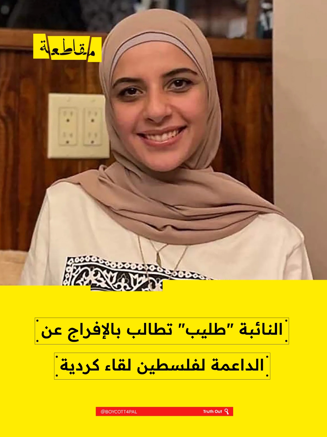 طالبت النائبة الأمريكية رشيدة طليب بضرورة الإفراج عن الطالب الفلسطينية لقاء كردية، مُحذرةً من تدهور صحتها بعد مرور عامٍ على احتجازها، سيما وأنها تعرضت لنوبات صرع أثناء احتجازها بسبب سوء التغذية خلال فترة احتجازها لدى إدارة الهجرة والجمارك الأمريكية (ICE).