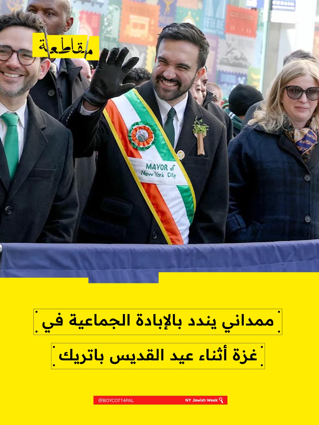 خلال احتفالات عيد القديس باتريك، استضاف عمدة نيويورك زهران ممداني مأدبة إفطار بمشاركة ماري روبنسون، أول رئيسة لأيرلندا، وخصص جزءًا كبيرًا من كلمته للحديث عن دعم روبنسون للشعب الفلسطيني وربط نشاطها بالتاريخ الاستعماري لأيرلندا.