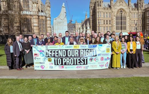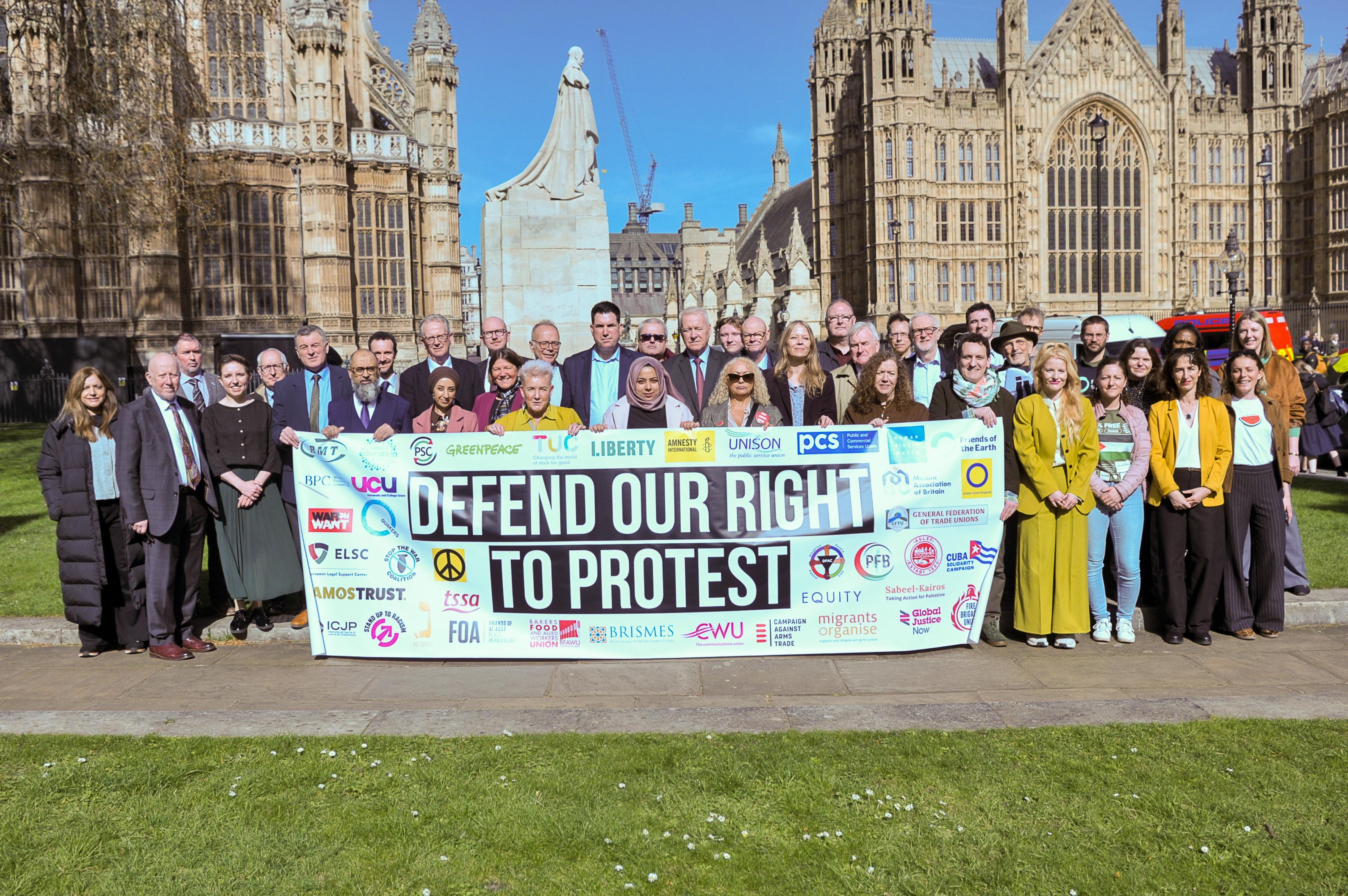 نظّم عشرات المتظاهرين الثلاثاء 17 مارس، وقفة احتجاجية أمام البرلمان في العاصمة “لندن” لمطالبة الأعضاء بالتصويت ضدّ قرار تقييد الاحتجاجات، والتي تأتي لمواجهة المسيرات والمطالبات بالحقوق بدعم الحقوق الفلسطينية.