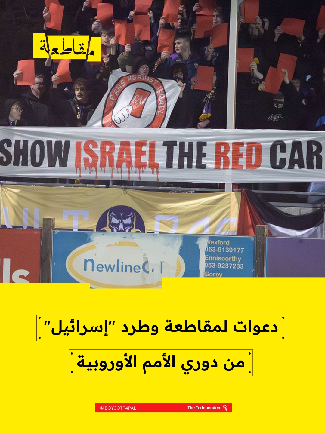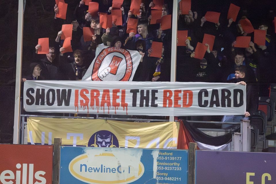 طالبت جماهير نادي ويكسفورد لكرة القدم والناشطون في حملة التضامن الأيرلندية الفلسطينية الاتحاد الأيرلندي لكرة القدم بمقاطعة المباريات المقبلة ضد منتخب الاحتلال، ومطالبتها "بإظهار البطاقة الحمراء لإسرائيل"، تضامنًا مع الشعب الفلسطيني.