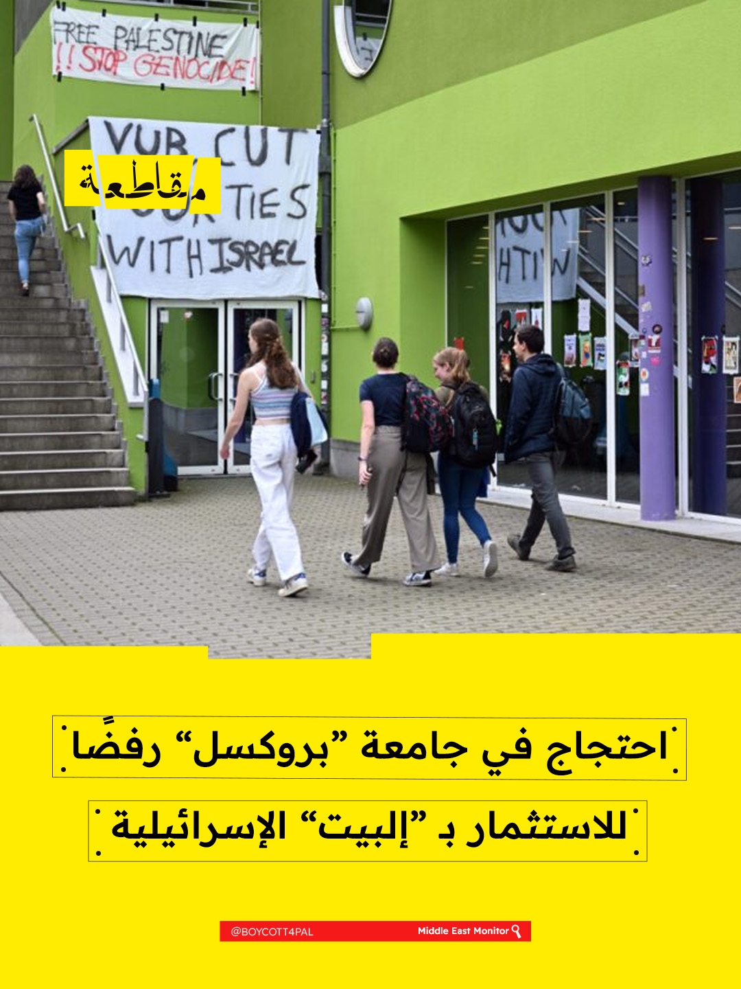نظّم نشطاء مناصرون للقضية الفلسطينية أمس الأربعاء 18 مارس، في حرم جامعة بروكسل الحرة ببلدة إيتربيك في بلجيكا، للمطالبة بإنهاء تعاونها مع شركة “إلبيت سيستمز” للصناعات العسكرية، وأشار المشاركون إلى أن هذه الشراكة تُجرى عبر مركز الأبحاث التابع للجامعة.