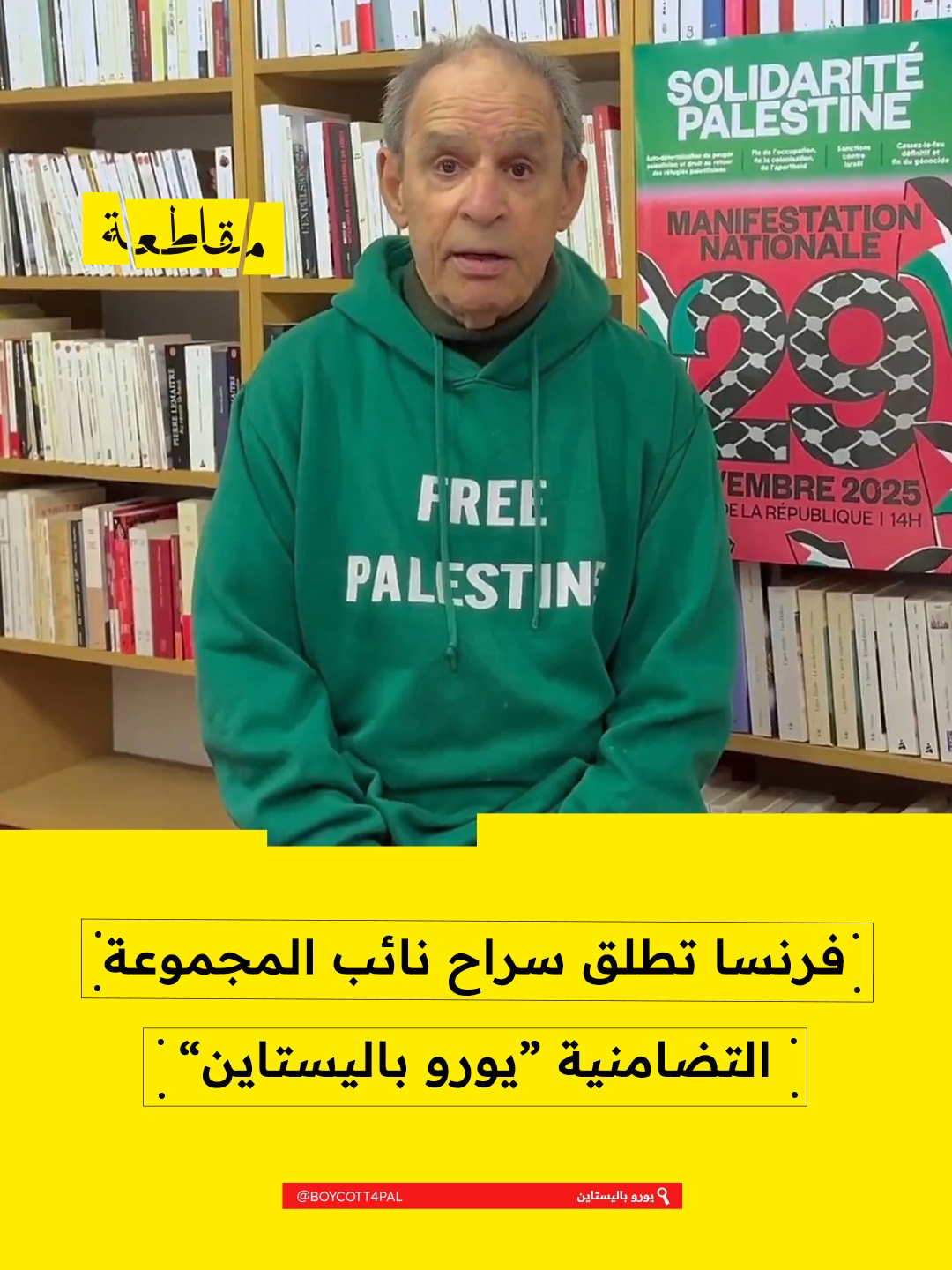 في وقتٍ سابق، ذكرت رئيسة جمعية “يورو باليستاين” “أوليفيا زيمور”، أن وزارة الداخلية الفرنسية لوّحت بإمكانية حل منظمات ومؤسسات داعمة لفلسطين بتهمة التحريض على “الكراهية والمقاطعة”.