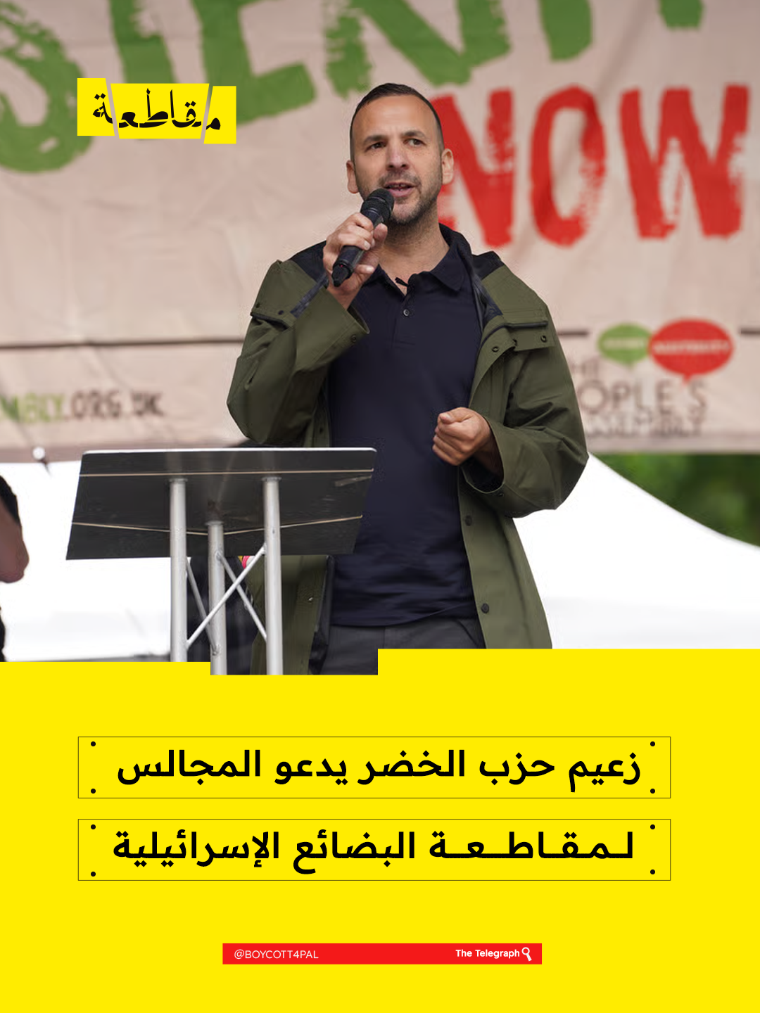 دعا زاك بولانسكي، زعيم حزب الخضر في المملكة المتحدة، المجالس المحلية إلى مقاطعة البضائع الإسرائيلية، مؤكدًا دعمه لحركة المقاطعة التي تهدف إلى مقاطعة الشركات المرتبطة بالاحتلال.