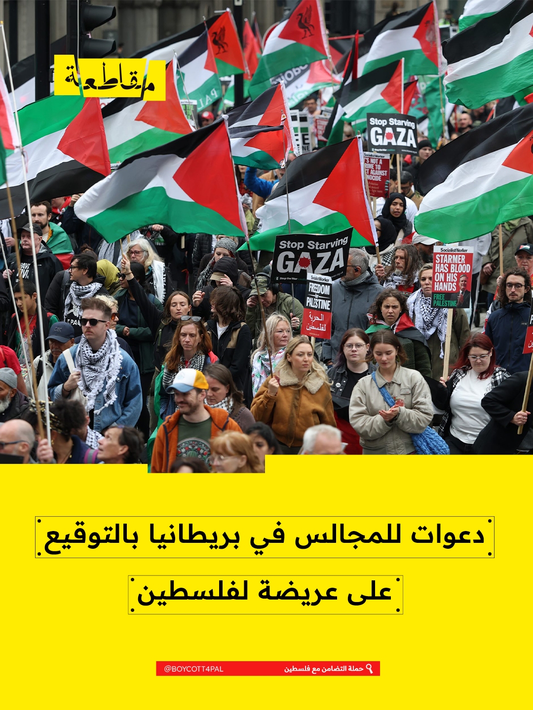 جددت حملة التضامن مع فلسطين دعوتها لمطالبة المجالس المحلية في بريطانيا بالتعهد بالدفاع عن الشعب الفلسطيني وقضيته، وذلك من خلال المراسلة عبر البريد الإلكتروني التالي: https://palestinecampaign.eaction.org.uk/CouncillorPledge