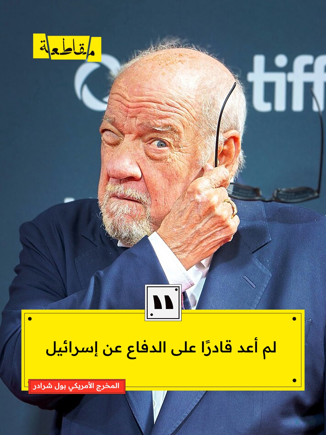 أكد المخرج وكاتب السيناريو الأمريكي “بول شرادر” أنه لم يعد بإمكانه الاستمرار عن الدفاع عن “إسرائيل” في ظل الأفعال التي تمارسها، وأضاف “شرادر” طوال حياتي، بصفتي شخصًا راشدًا، كنت مؤيدًا لإسرائيل، ربما بسبب نشأتي في الدراسات التوراتية، وربما لرغبتي في رؤية تصحيح أخطاء معاداة السامية.. لم أتخيل أنني سأفكر بشكل مختلف. لكنني الآن أجد أفعال إسرائيل غير قابلة للدفاع عنها".