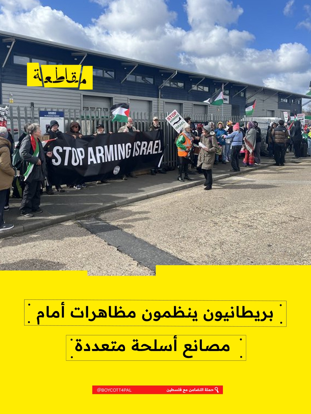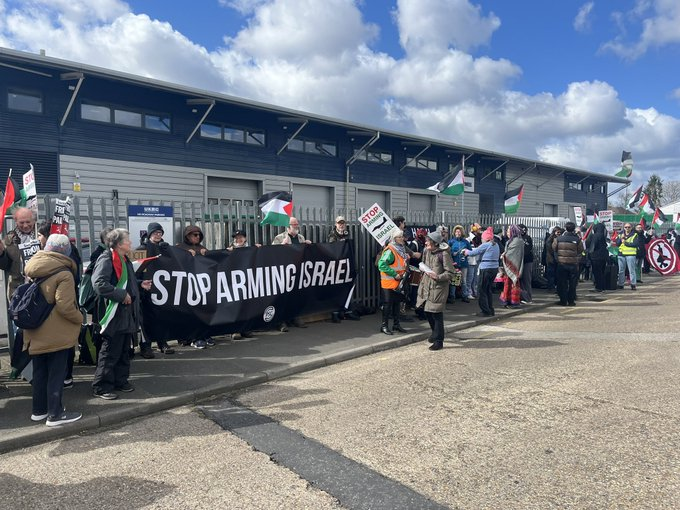بدأت اليوم احتجاجات واسعة لدعم فلسطين في المملكة المتحدة، أمام مصانع أسلحة مختلفة في أنحاء البلاد.