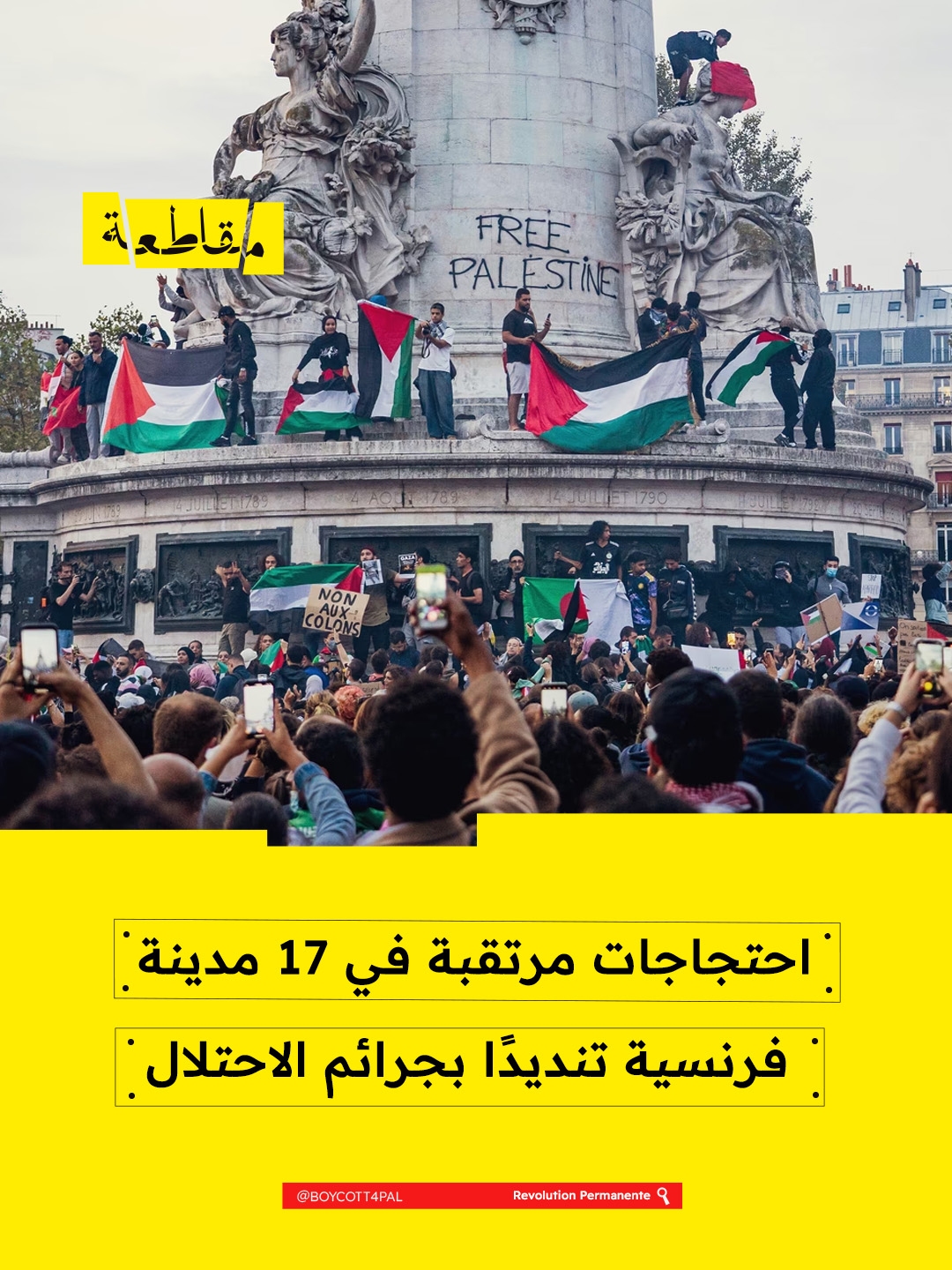 وأكدت المجموعة أن أكثر من 90 منظمة، بما فيها الاتحاد الفلسطيني الأوروبي، الثورة الدائمة، حركة المقاطعة وسحب الاستثمارات وفرض العقوبات في فرنسا، والمعاطف البيضاء لغزة، ستشارك في تنظيم مسيرات ومظاهرات في 17 مدينة فرنسية.