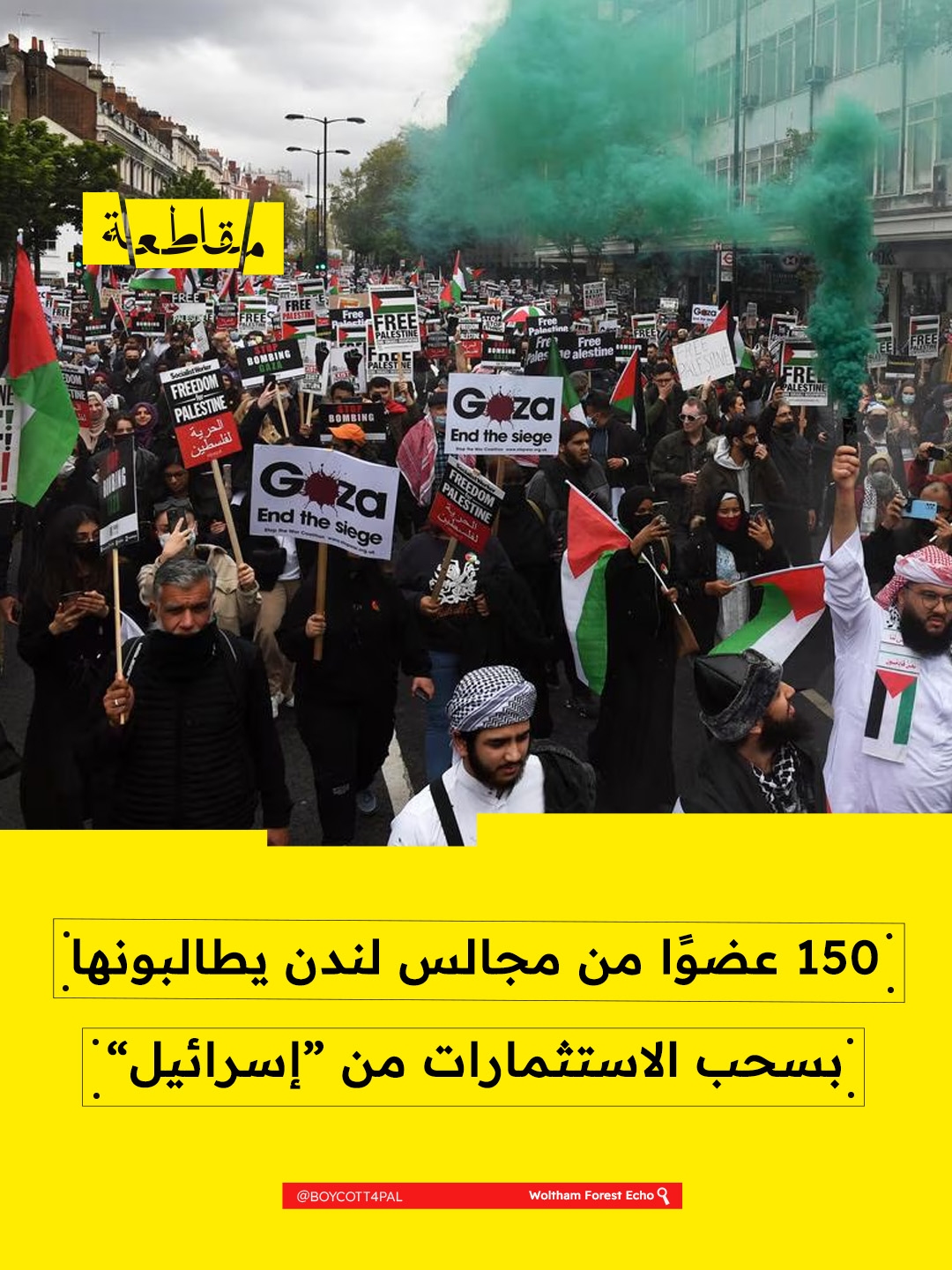 وجاء في رسالة موقعة من أكثر من 150 عضوًا في مجالس أحياء لندن، بالإضافة إلى أربعة أعضاء في مجلس لندن، أن صندوق لندن للاستثمار الجماعي (LCIV) يجب أن يضع جدولًا زمنيًا لسحب الاستثمارات بالكامل ويستبعد أي استثمارات مستقبلية قد تدعم الحكومة الإسرائيلية في انتهاكاتها بحق الفلسطينيين.