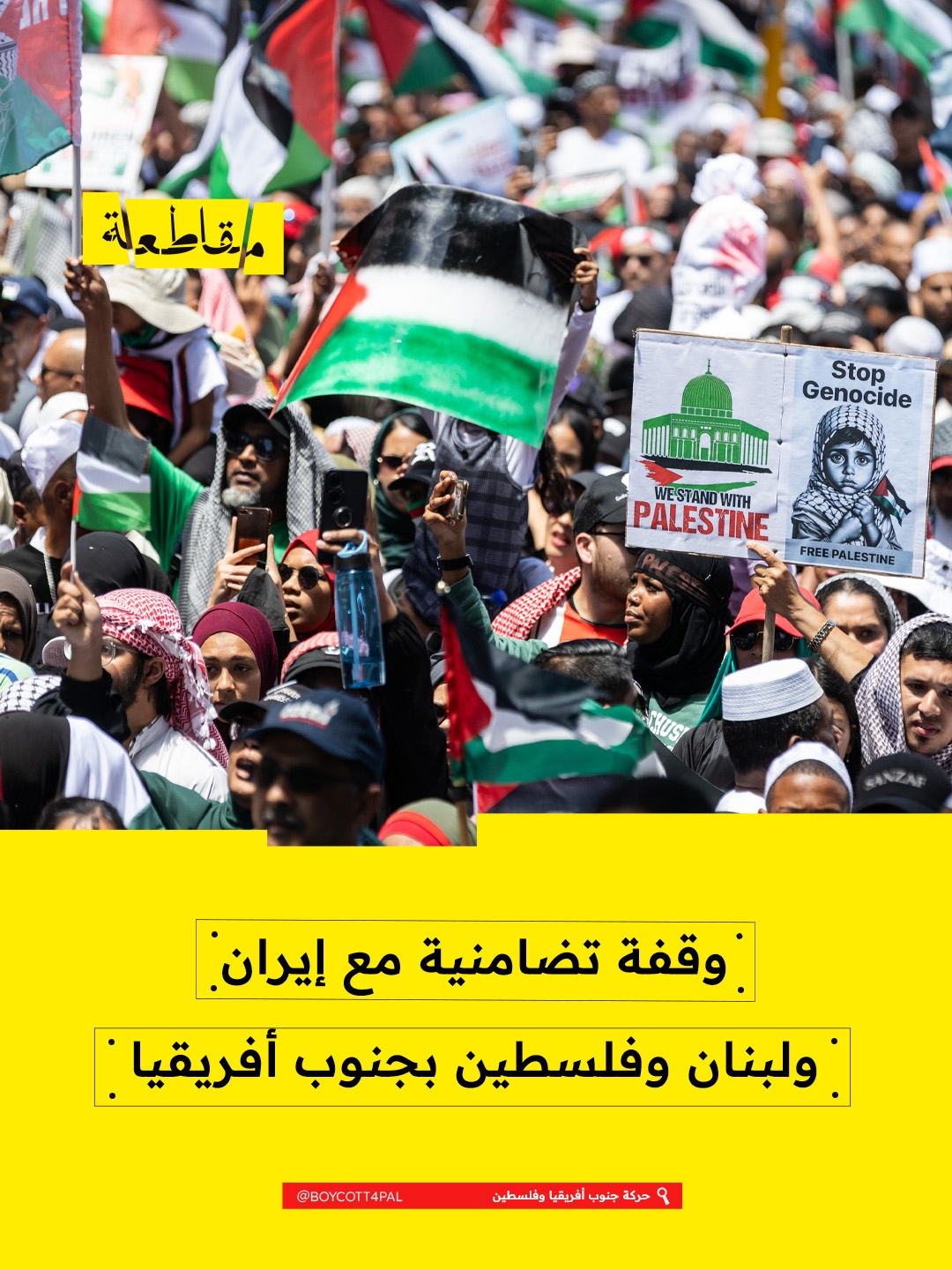نظّمت حركة جنوب أفريقيا وفلسطين أمس 27 مارس، وقفة تضامنية احتجاجًا على العدوان الإسرائيلي الأمريكي على لبنان وفلسطين وإيران، حيث رفع المشاركون في الوقفة أعلام البلدان الثلاثة ولافتات تُدين العدوان المتواصل.