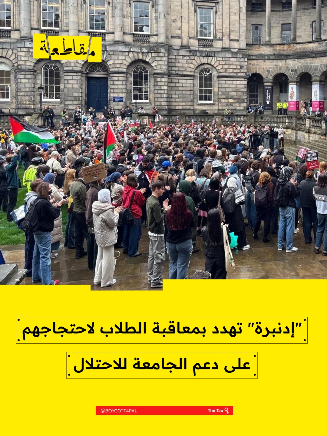هددت جامعة إدنبرة باتخاذ إجراءات قانونية ضدّ المتظاهرين الذين سيطروا على مبنيين فيها كخطوة احتجاجية على تواطئها في تمويل جرائم الإبادة المتواصلة بحق الشعب الفلسطيني والعدوان المتواصل على لبنان وإيران.