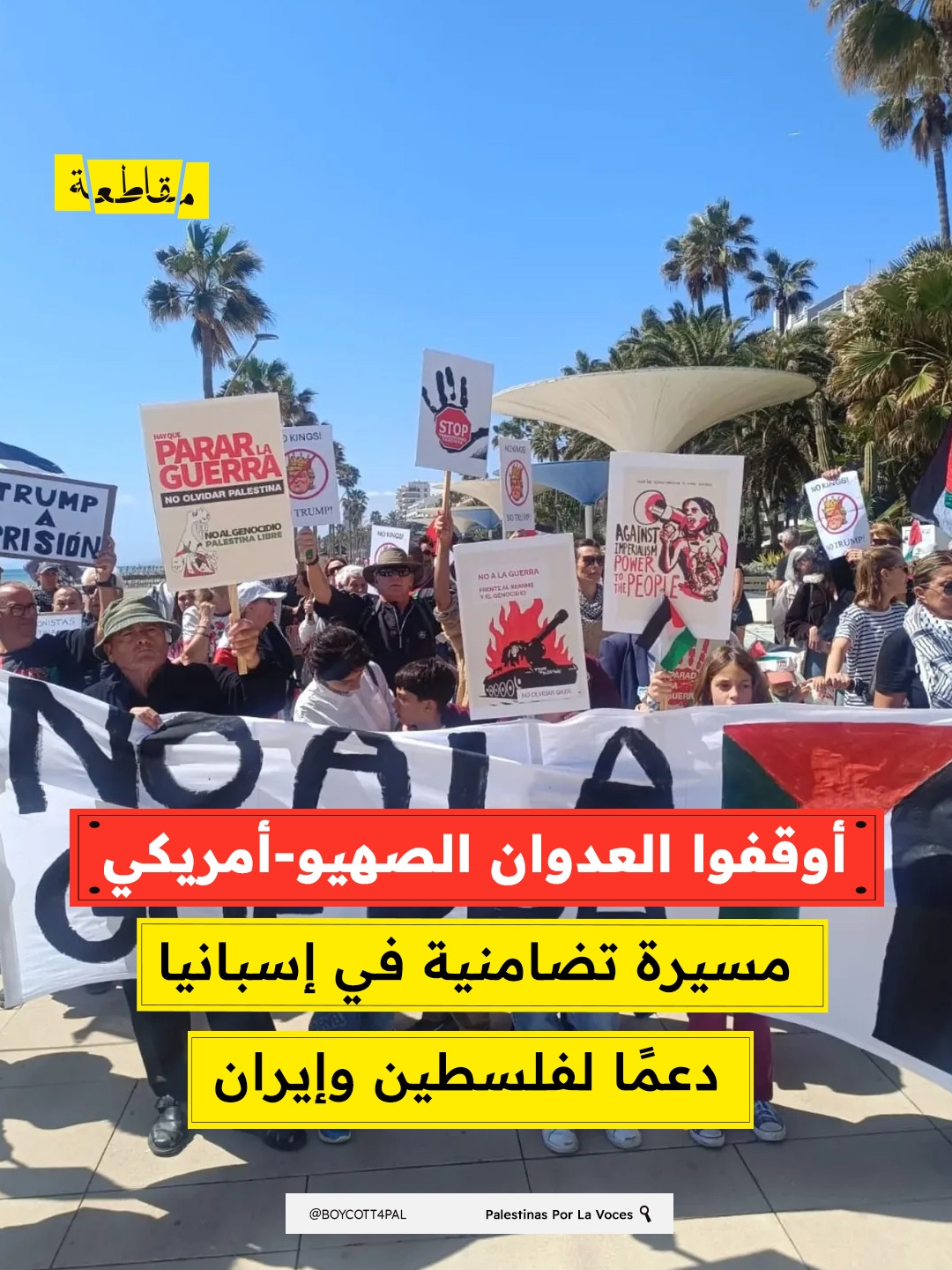 اوقفوا العدوان الصهيو-أمريكي مسيرة تضامنية في إسبانيا دعمًا لفلسطين وإيران
