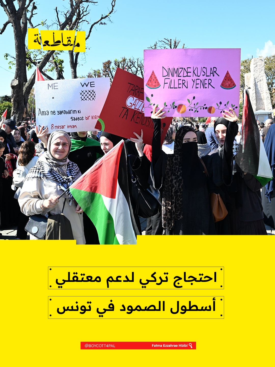 نظم عشرات المتضامنين مع فلسطين أمس الأحد، مظاهرة احتجاجية وسط إسطنبول للمطالبة بالإفراج عن نشطاء أسطول الصمود المعتقلين لدى السلطات الأمنية التونسية.