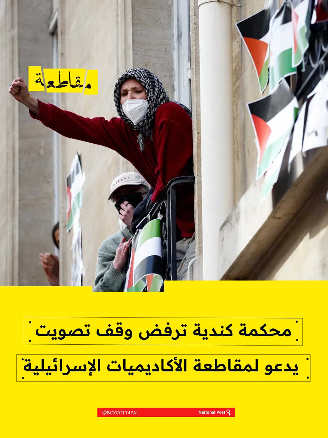 رفضت المحكمة العليا في مونتريال طلبًا قضائيًا تقدمت به طالبة في كلية الحقوق بجامعة ماكجيل بهدف وقف تنفيذ تصويت طلابي يدعو إلى مقاطعة المؤسسات الأكاديمية الإسرائيلية.