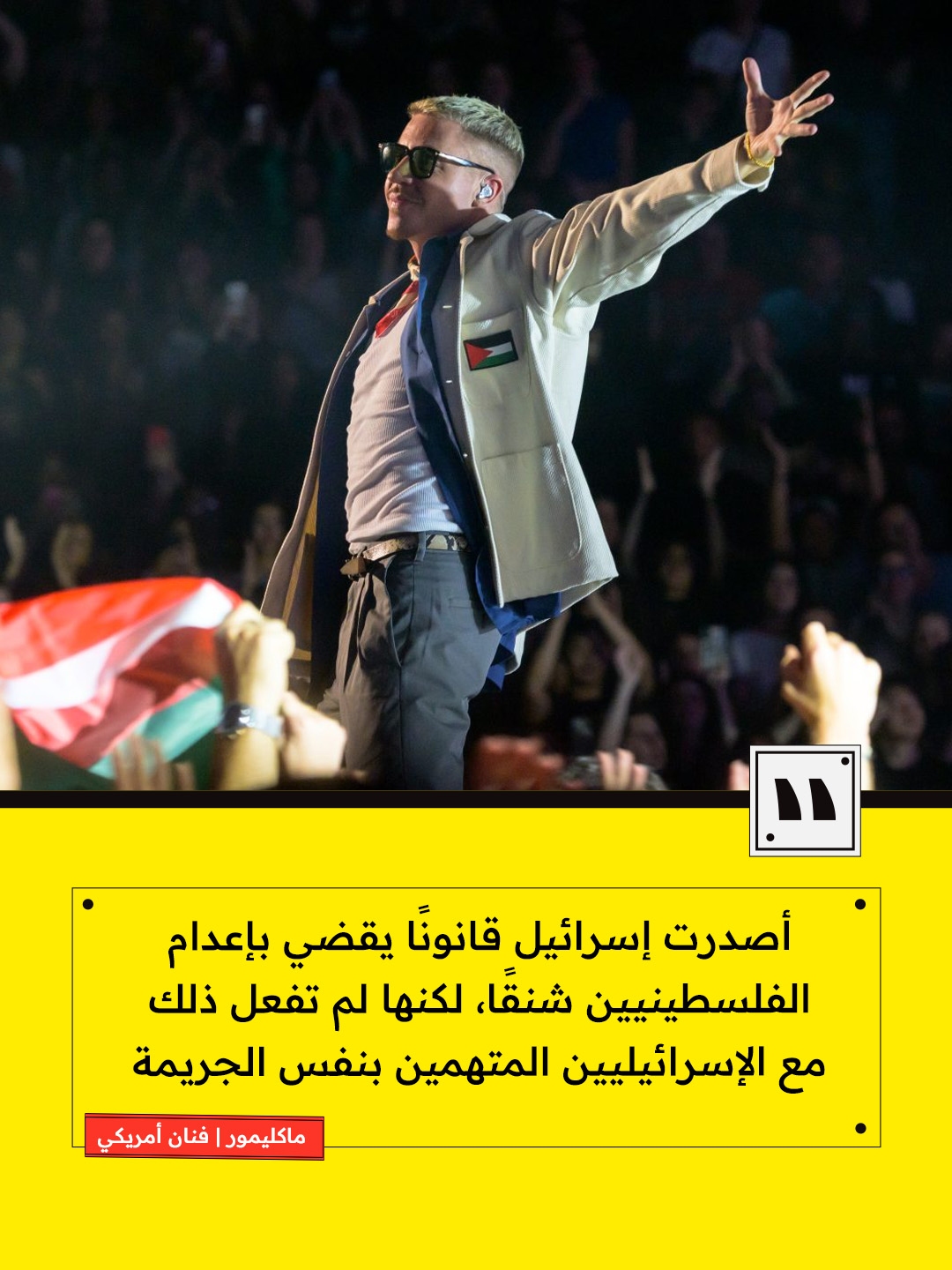 أعرب الفنان الأمريكي، ماكليمور، عن رفضه لإقرار الاحتلال قانونًا لإعدام الأسرى الفلسطينيين، متهمًا “إسرائيل” بازدواجية المعايير من خلال “القانون” الموجه ضدّ الفلسطينيين مستثنيةً منه الإسرائيليين.