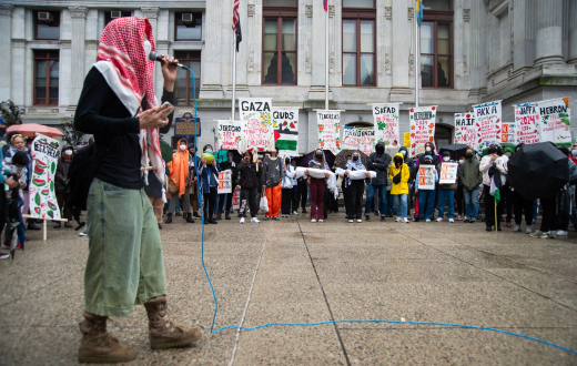 نظّمت منظمة طلاب من أجل العدالة في فلسطين في فيلادلفيا، تجمعًا احتجاجيًا أمس الثلاثاء للمطالبة بسحب استثمارات جامعة تمبل من “إسرائيل”، وإجراء تصويت استفتائي من قبل حكومة طلاب جامعة تمبل بشأن هذا الأمر.