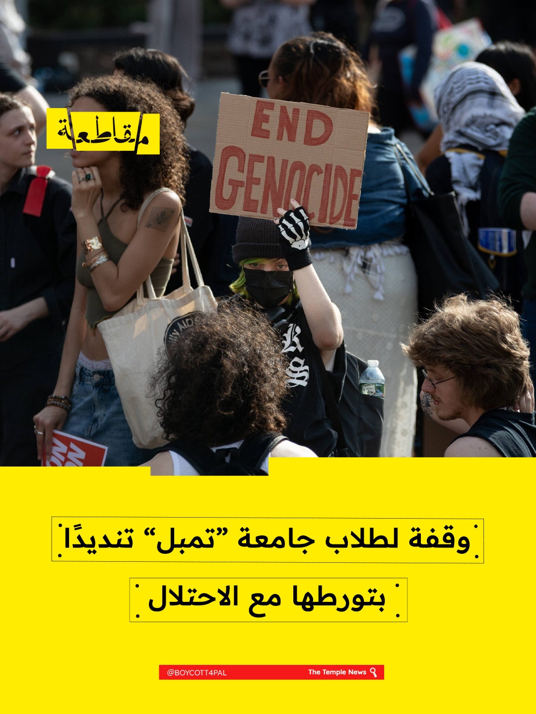 كما شارك في الاحتجاج أعضاء ائتلاف تمبل للعمل التضامني، منتقدين شراكات الجامعة مع شركتي بوينغ ولوكهيد مارتن، المتورطتان بصناعة أسلحة لـ”إسرائيل” والولايات المتحدة، كما أشار المتظاهرين إلى شركات أخرى لها علاقات بـ”إسرائيل” تستثمر فيها الجامعة أو ترتبط بها، مثل "تايوان لصناعة أشباه الموصلات" و"أمازون".