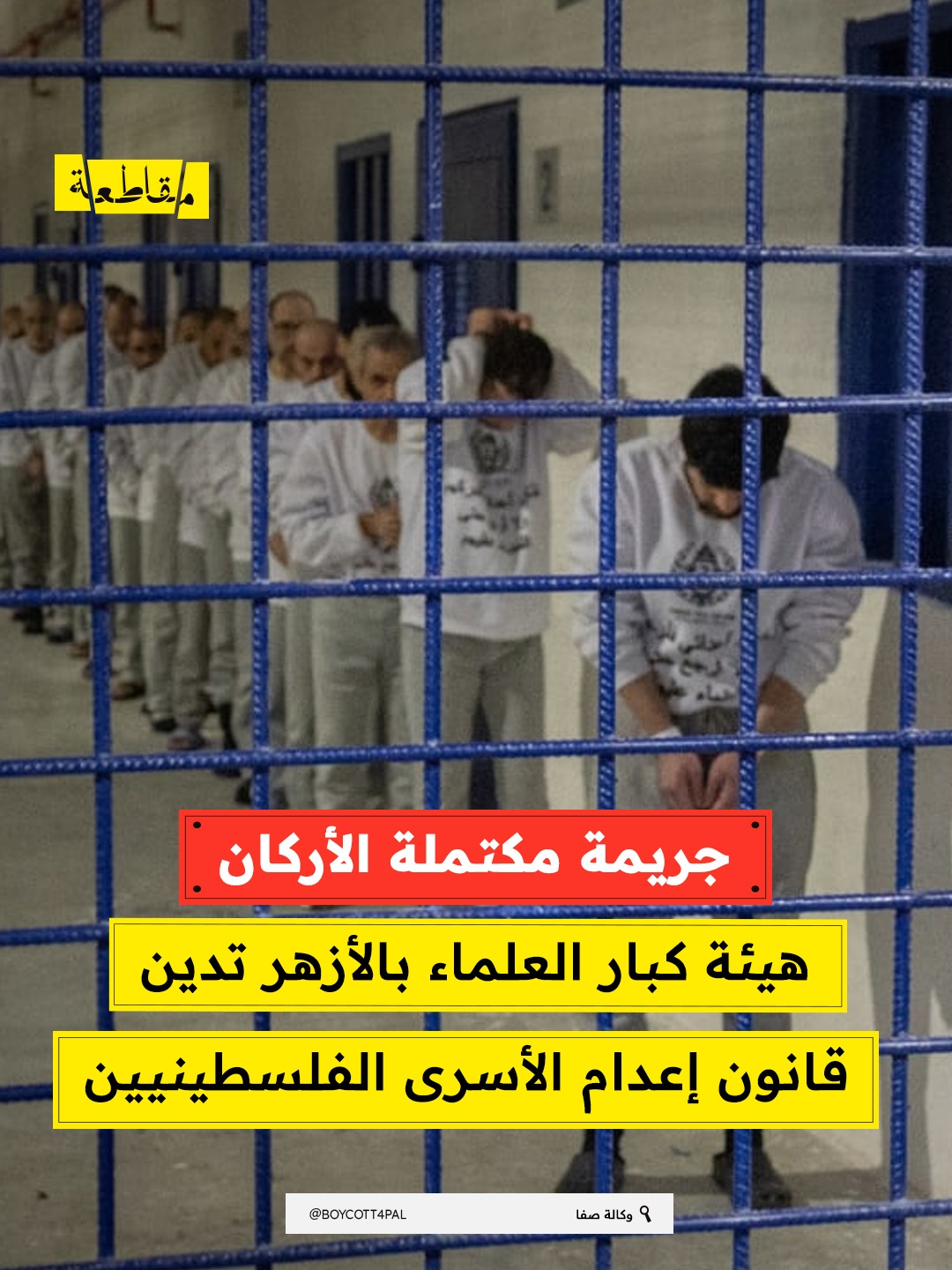 جريمة مكتملة الأركان هيئة كبار العلماء بالأزهر تدين قانون إعدام الأسرى الفلسطينيين