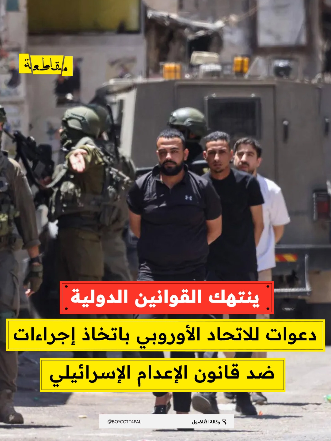 دعا نحو 31 منظمة دولية الاتحاد الأوروبي لاتخاذ إجراءات عاجلة ضدّ قانون إعدام الأسرى الفلسطينيين، موضحين أن “القانون” ينتهك الضمانات المعترف بها دولياً لأولئك الذين يواجهون عقوبة الإعدام.