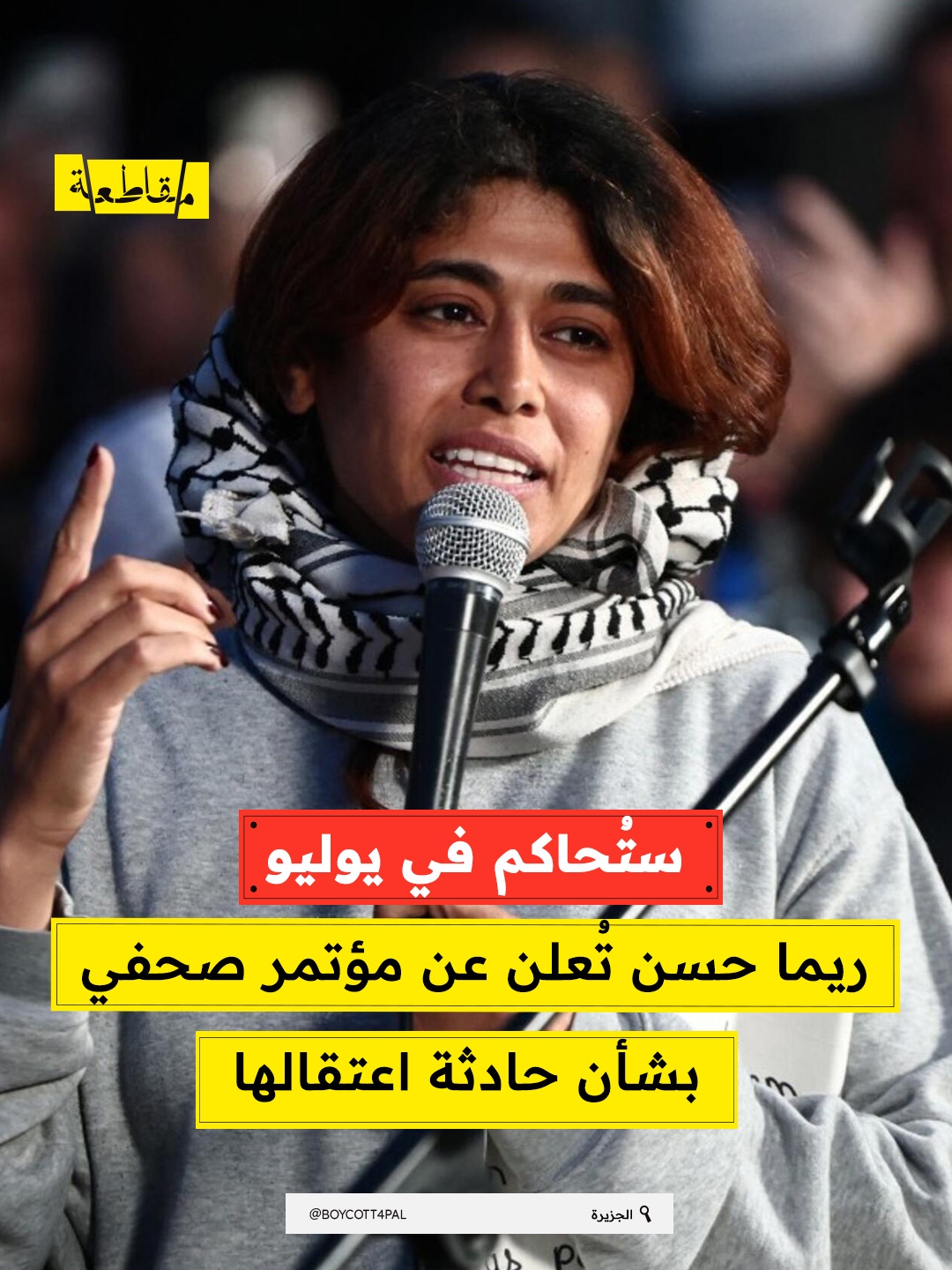 أعلنت النائبة في البرلمان الأوروبي ريما حسن عبر حسابها على “انستغرام” أنها ستعقد رفقة محاميها اليوم الجمعة، مؤتمرًا صحفيًا للحديث عن تفاصيل حادثة احتجازها من قبل الشرطة الفرنسية، على خلفية اتهامها بـ"تمجيد الإرهاب.