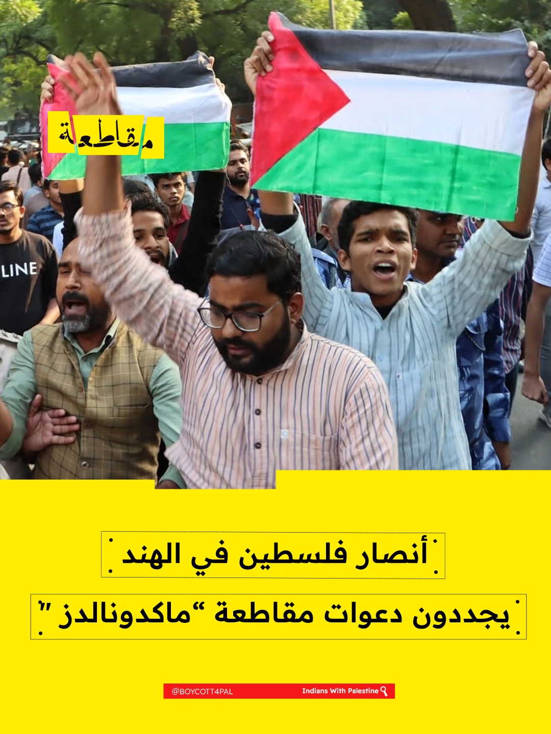 دعا ناشطون مناصرين للقضية الفلسطينية في الهند إلى مقاطعة سلسلة مطاعم ماكدونالدز، في إطار حركة شعبية تهدف إلى الضغط على الشركة لوقف التواطؤ في دعم إقتصاد الاحتلال الإسرائيلي ونظام الفصل العنصري.