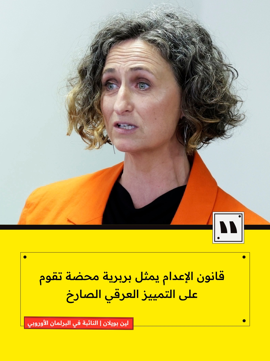 أكدت النائبة في البرلمان الأوروبي، لين بويلان على رفضها لقانون إعدام الأسرى الفلسطينين. كما طالبت الاتحاد الأوروبي بقطع علاقاته مع الاحتلال، وفرض العقوبات ضد قيادات الاحتلال المتطرفين.