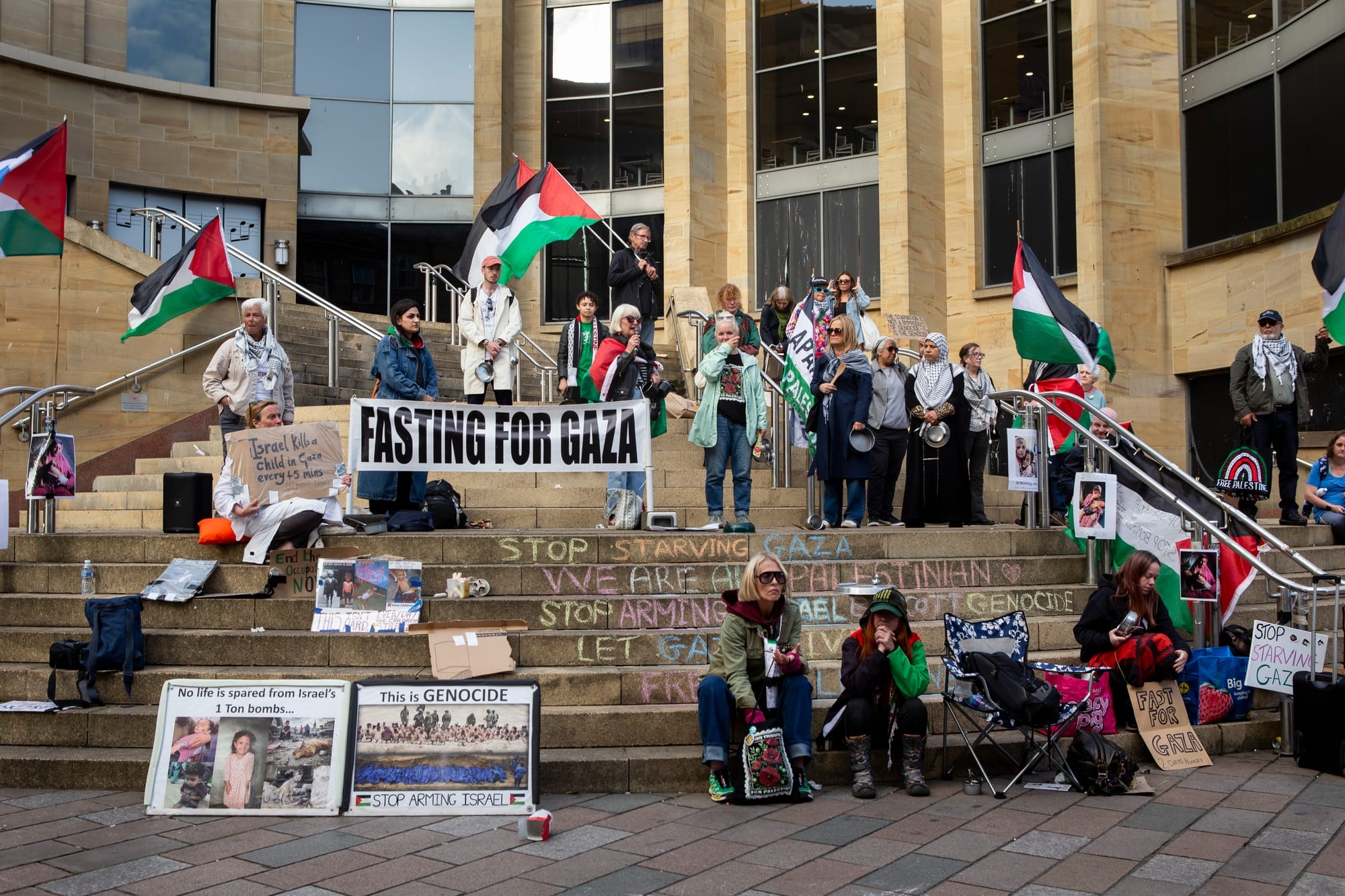 نظّم نشطاء حملة أصدقاء فلسطين في مانشستر، وقفة احتجاجية أمام قاعة بريدج ووتر في مانشستر خلال مسابقة تعقدها شركة سيمنز وهالي لقادة الأوركسترا، وقد هتف “المشاركون” الفن لا يمحو نظام الفصل العنصري.