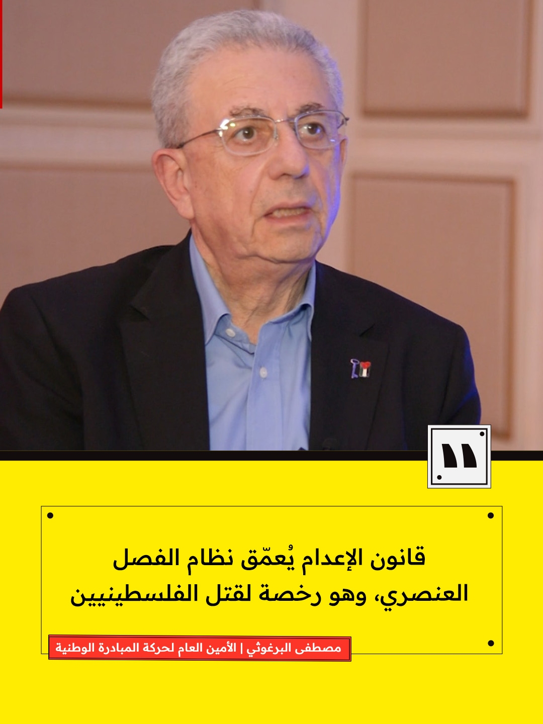 كما وصف “البرغوثي” القانون الإسرائيلي بأنه انحدار فاشي من قبل “إسرائيل” وليس مجرّد قانون.