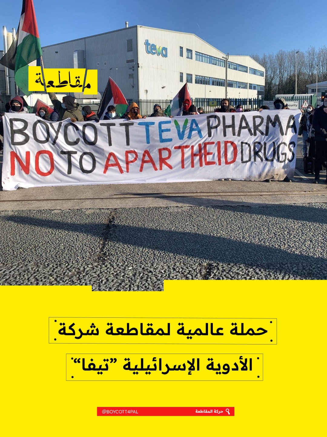 أطلقت حركة المقاطعة وائتلافات صحية عالمية أسبوع عمل مكثف لمقاطعة شركة الأدوية الإسرائيلية "تيفا"، تزامنًا مع يوم الصحة العالمي، تحت شعار "اقرأ الملصق دائمًا". وتستهدف الحملة التي تمتد من 7 أبريل حتى 14 أبريل، كشف تورط الشركة في تمويل الاحتلال والتمييز العنصري، داعيةً لاستبدال منتجاتها ببدائل متاحة.
