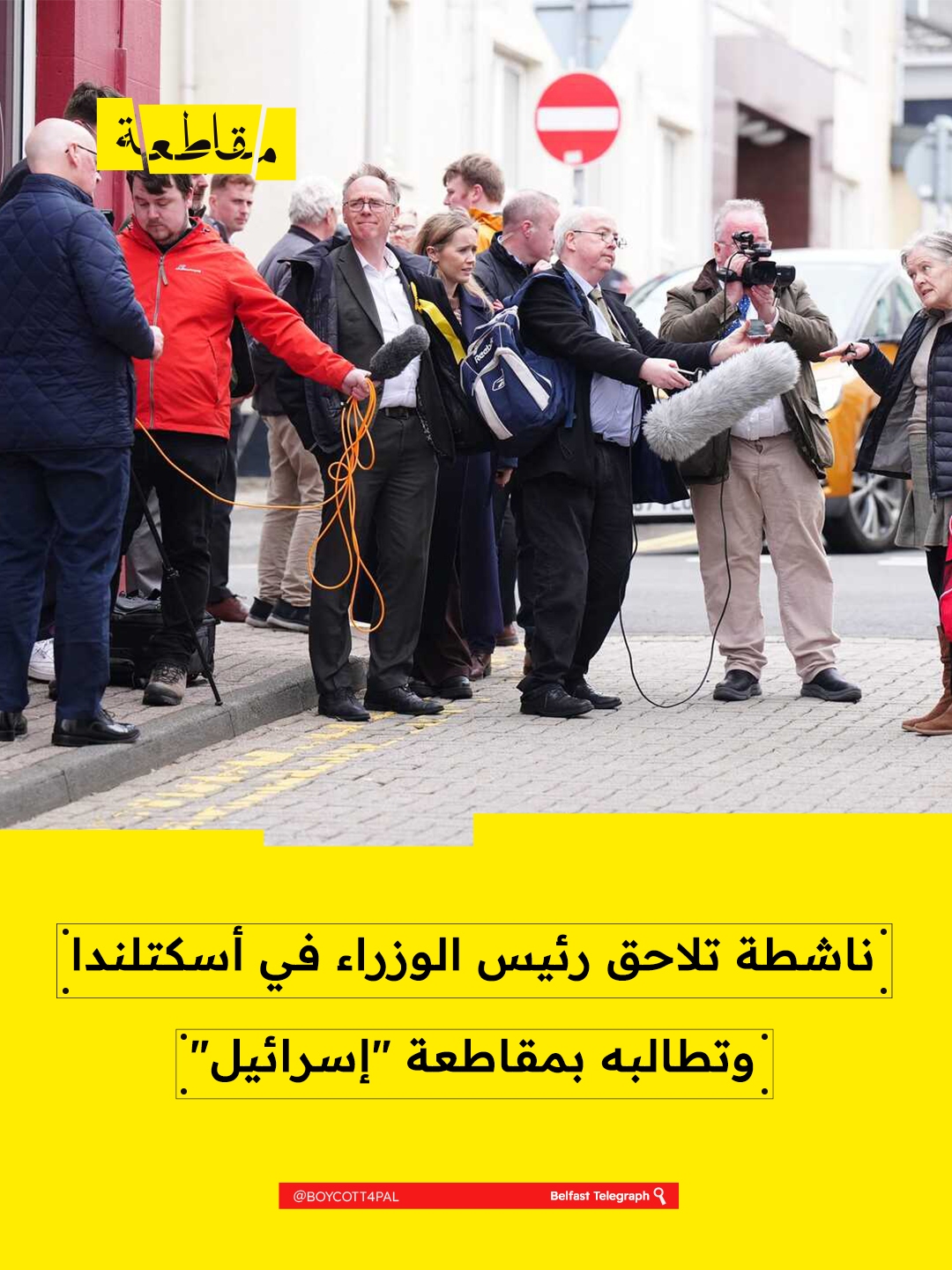 لاحقت ناشط متضامنة مع فلسطين رئيس وزراء أسكتلندا جون سويني خلال جولة انتخابية في الجزر الغربية وطالبته باتخاذ موقف صارم تجاه "إسرائيل" على خلفية عدوانها على غزة.