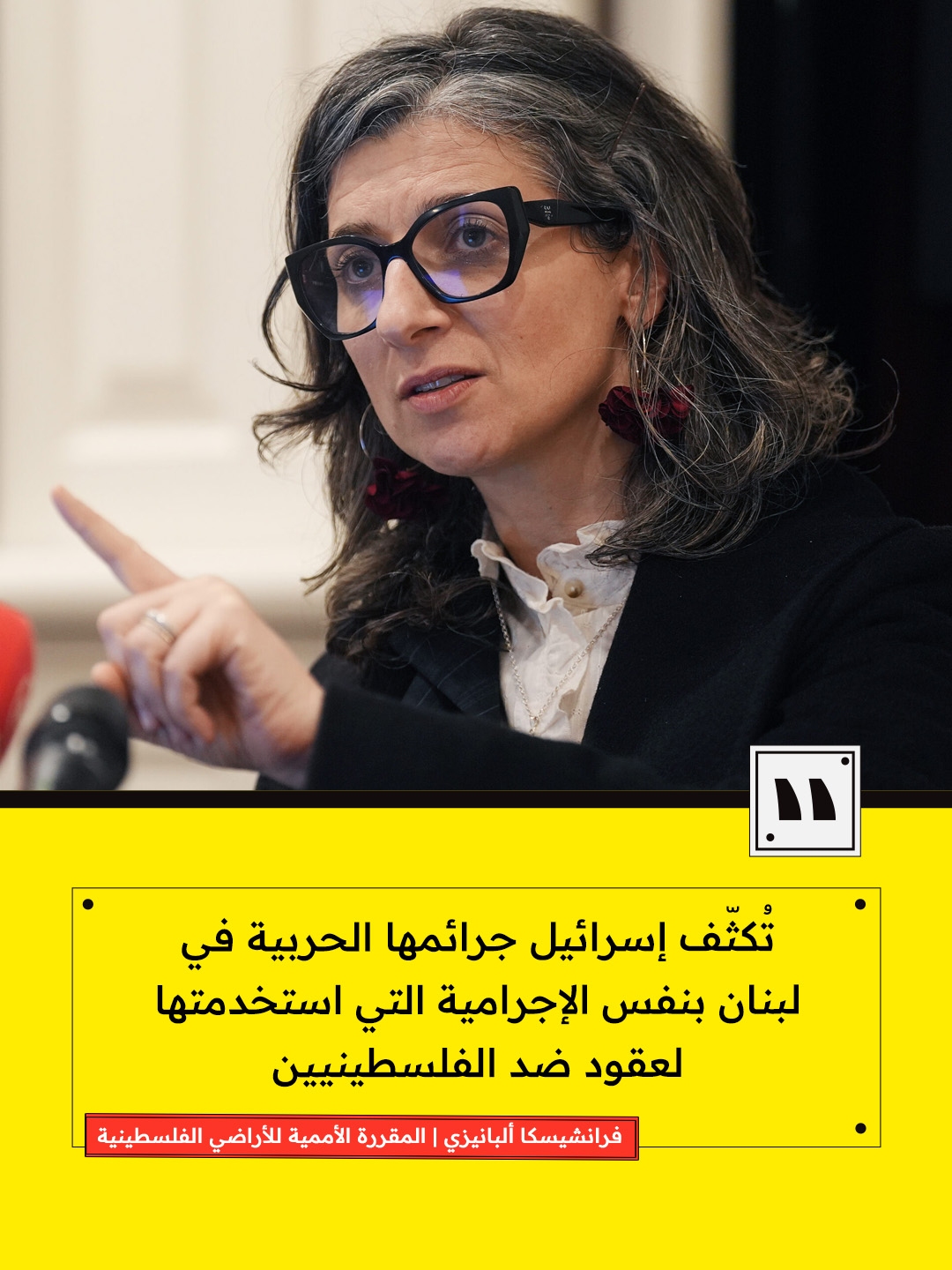 دعت المقررة الخاصة للأمم المتحدة المعنية بالأراضي الفلسطينية المحتلة، فرانشيسكا ألبانيزي، إلى إيقاف عدوان “إسرائيل” ومعاقبتها على إثر الممارسات الإجرامية التي تقوم بها في لبنان عقب الإعلان عن الهدنة بين إيران وإسرائيل وأمريكا.