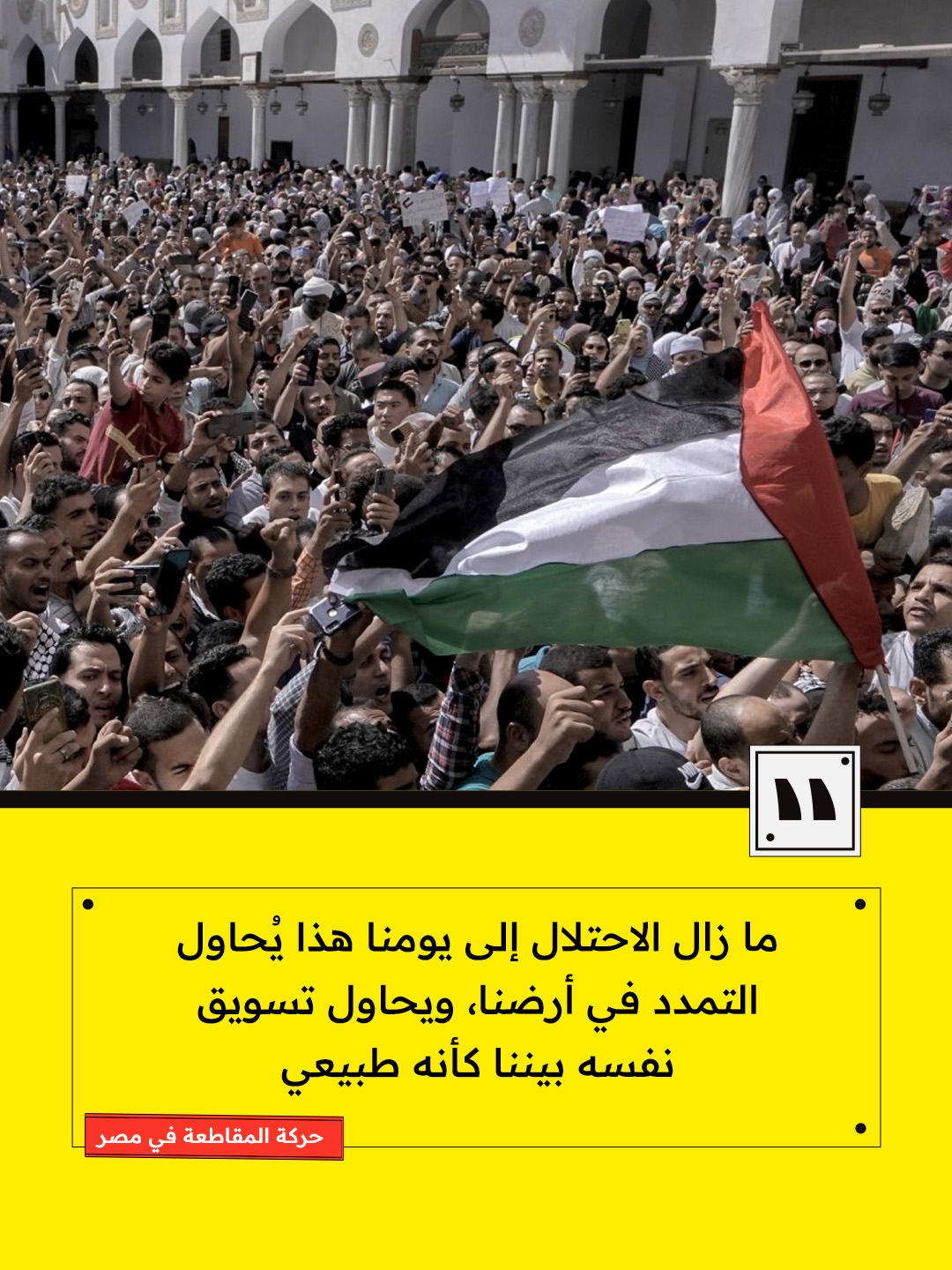 جددت حركة المقاطعة في مصر، تمسكها بالمقاطعة كسلاح ثابت لمواجهة الاحتلال الإسرائيلي في ظل محاولاته التطبيعية والعدوانية على الأراضي العربية.