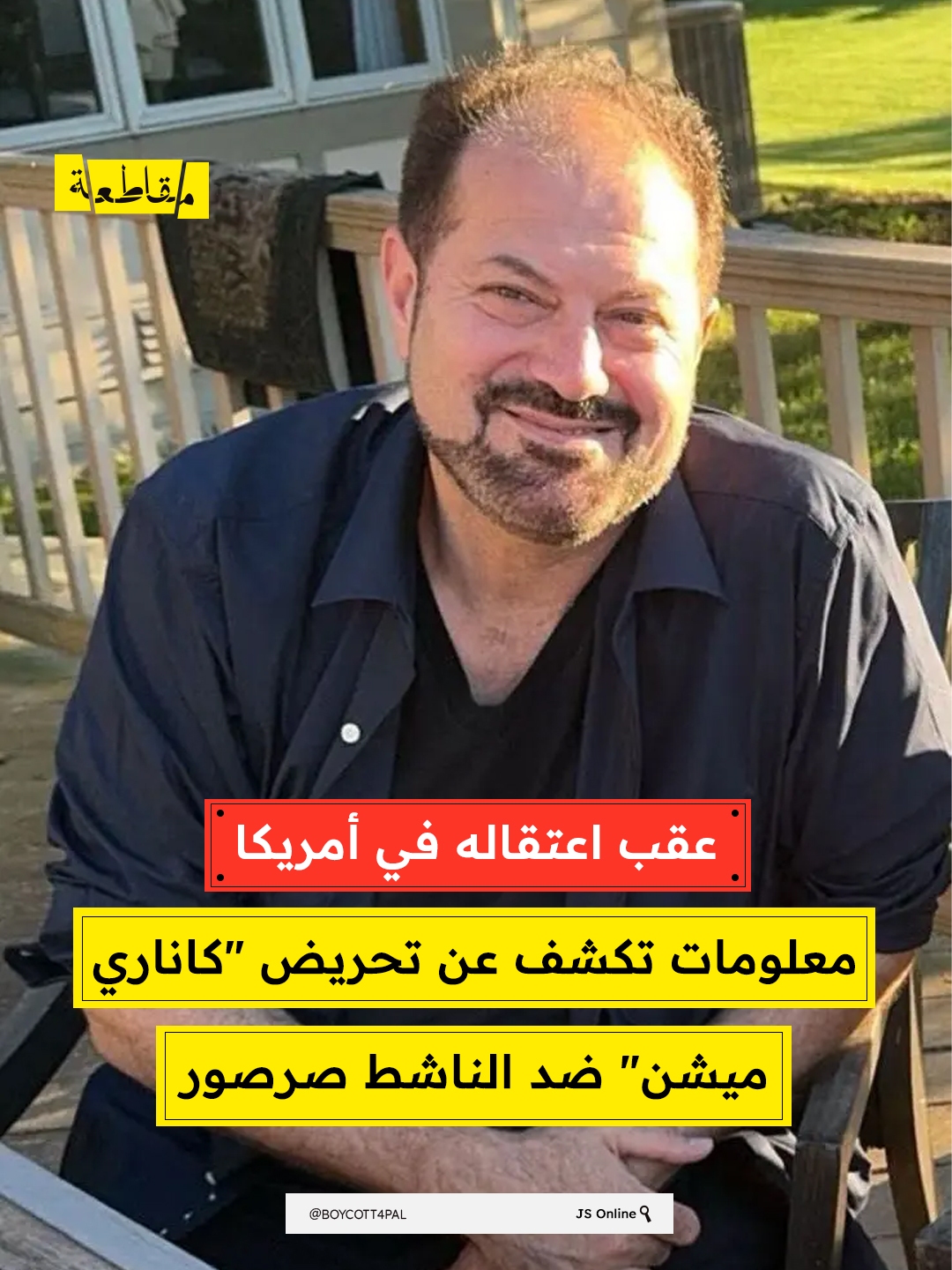 تُثير قضية اعتقال الناشط صلاح سرسور في الولايات المتحدة تنديدات واسعة، في ظل اتهامات تتعلق بـ“تمويل منظمات إرهابية”، واعتماد جهات أمنية على معلومات منشورة في موقع إلكتروني مثير للجدل يُعرف باسم “كاناري ميشن”.
