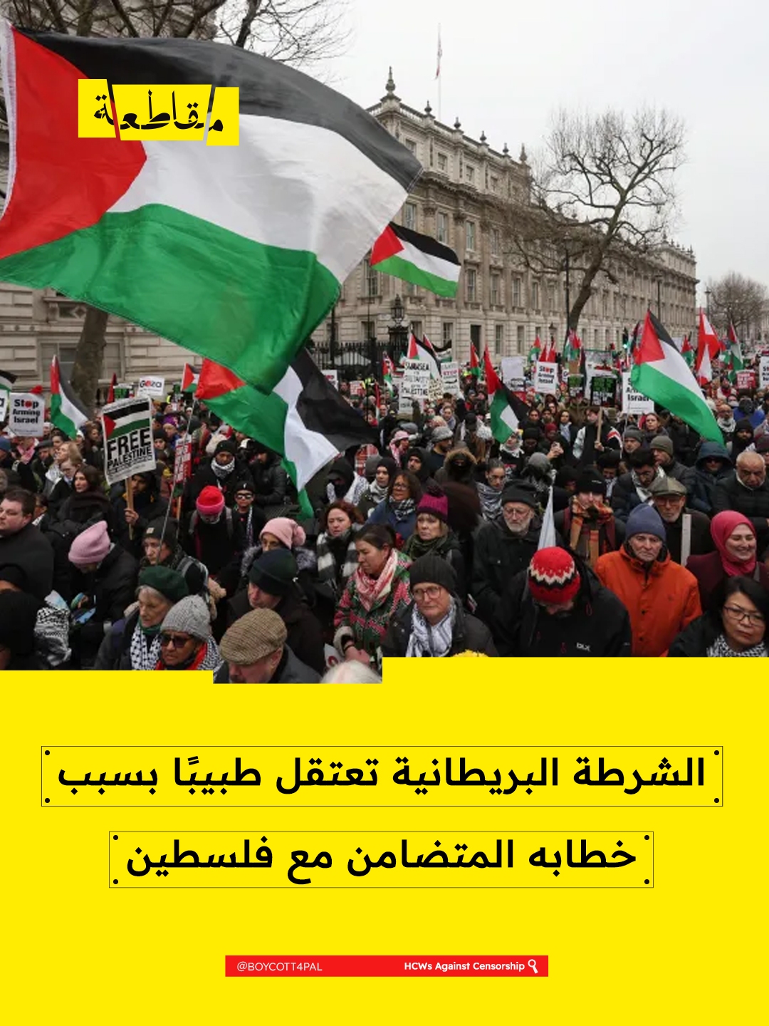 اعتقلت الشرطة البريطانية في لندن طبيبًا، على خلفية خطاب ألقاه مؤخرًا تضامنًا مع فلسطين .