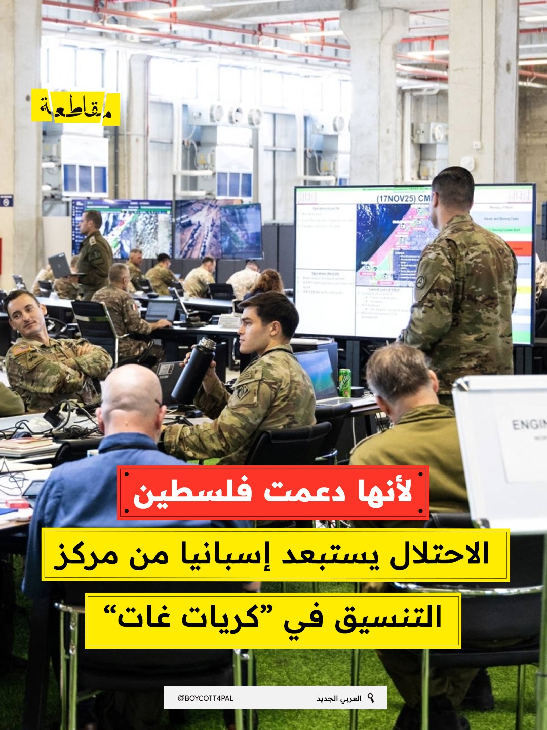قررت حكومة الاحتلال استبعاد إسبانيا من مركز التنسيق المدني - العسكري في "كريات غات"، على خلفية موقفها الرافض للعدوان على فلسطين ولبنان، والذي وصفت الهجوم الأخير على لبنان بأنه "هجوم على الحضارة والقيم الإنسانية".