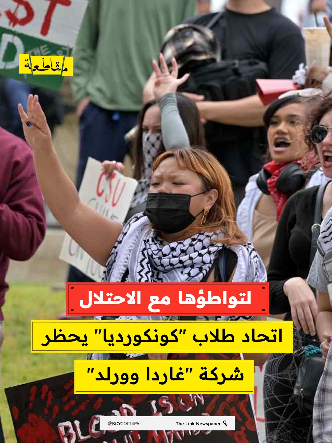 أقر اتحاد طلاب جامعة كونكورديا في كندا حظرًا شاملًا على شركة الأمن الخاصة "غاردا وورلد"، مطالباً بإزالة أجهزة الصراف الآلي ووقف كافة الخدمات المرتبطة بها أو بفروعها داخل الحرم الجامعي.
