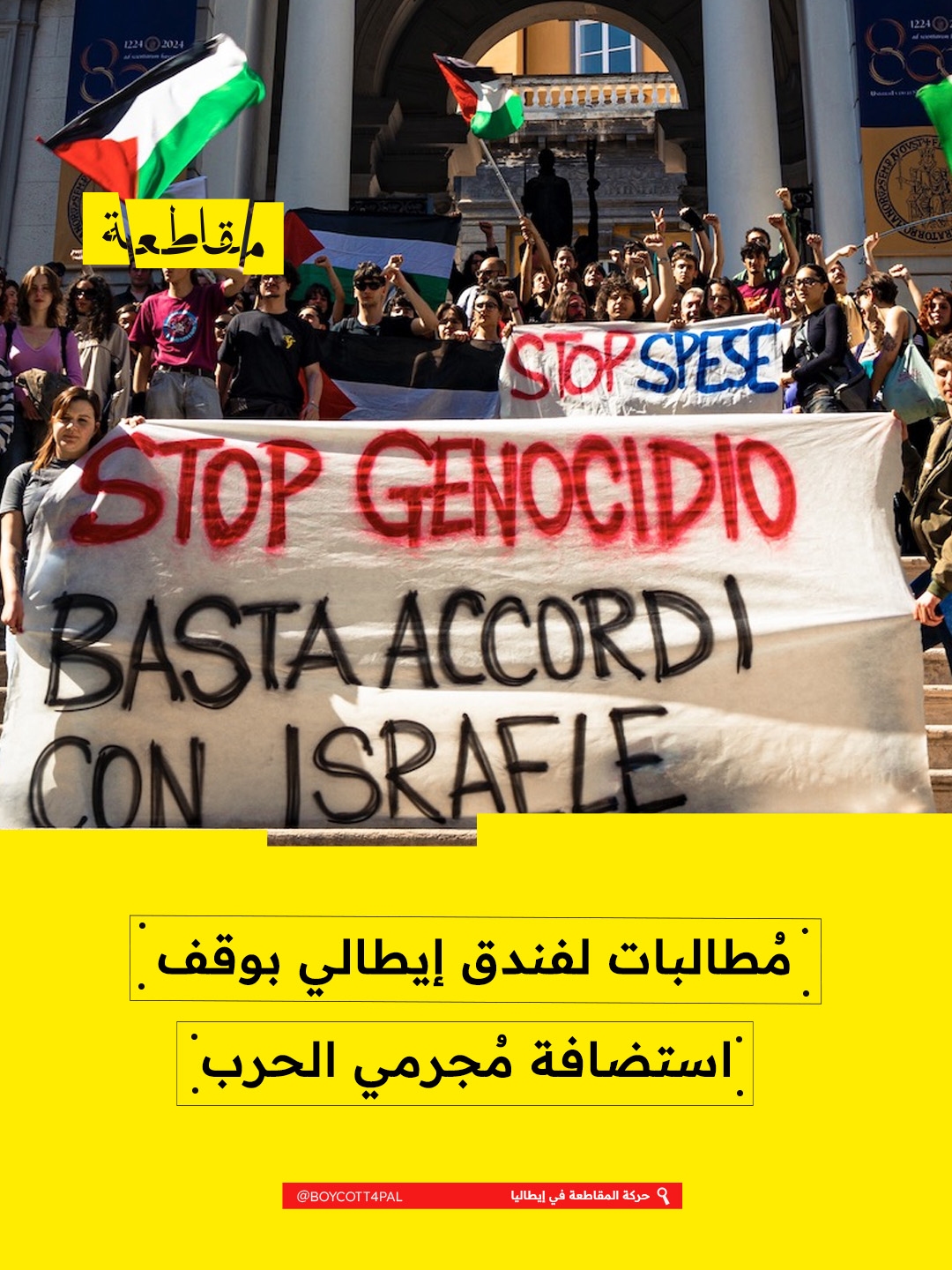 دعت حركة المقاطعة في إيطاليا إدارة فندق "أريستون" في مدينة "كاباتشيو"، لتحمل مسؤوليتها الأخلاقية والقانونية تجاه استضافة مجموعات مرتبطة بجيش الاحتلال.