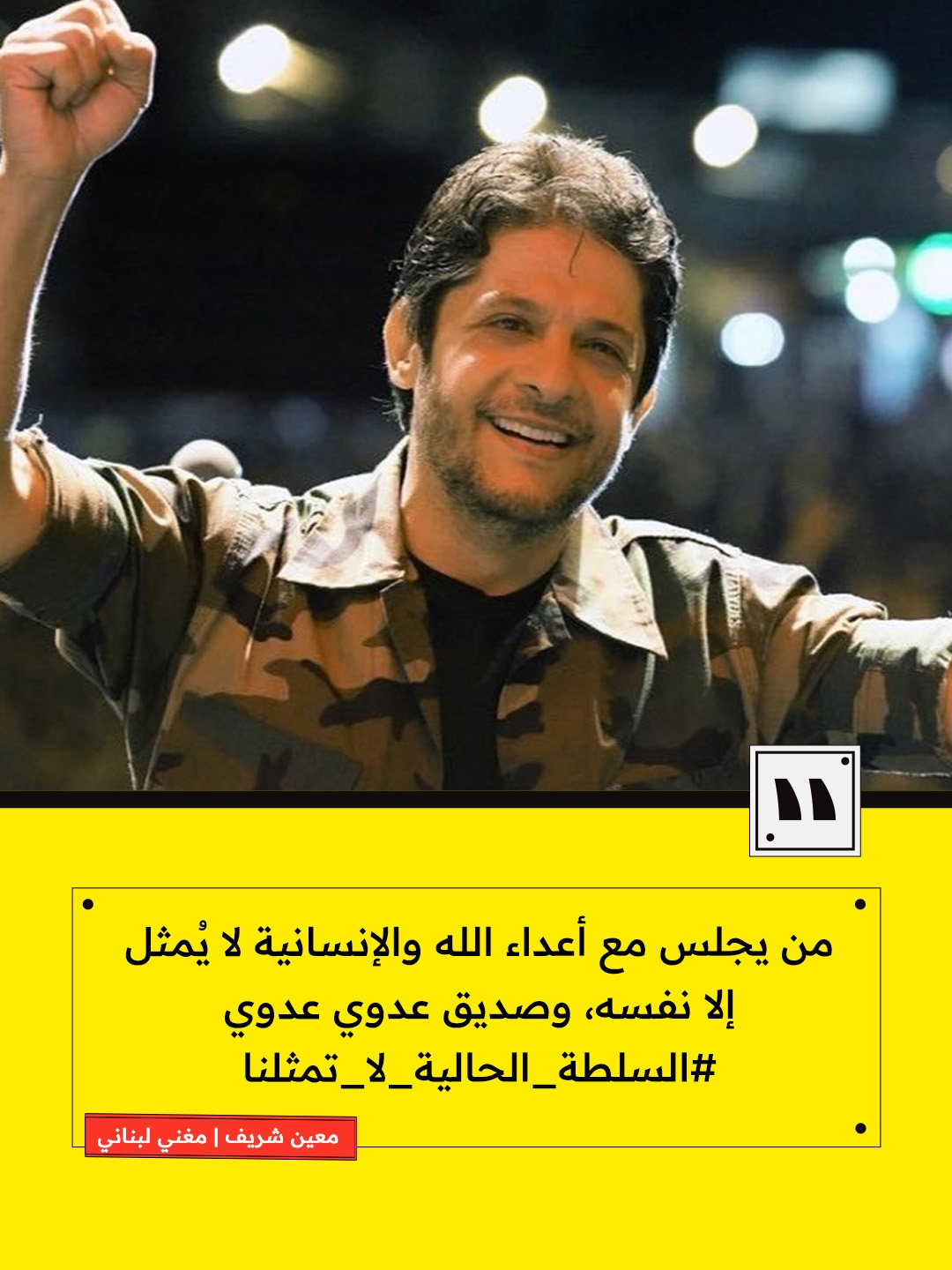 تعليق الفنان اللبناني، معين شريف، جاء تنديدًا بلقاء تفاوضي يجمع للمرّة الأولى بين ممثلين عن السلطات اللبنانية والجانب الإسرائيلي في العاصمة الأمريكية واشنطن مساء اليوم، وسط حالة غضب لبناني واسع رفضًا للقاء.