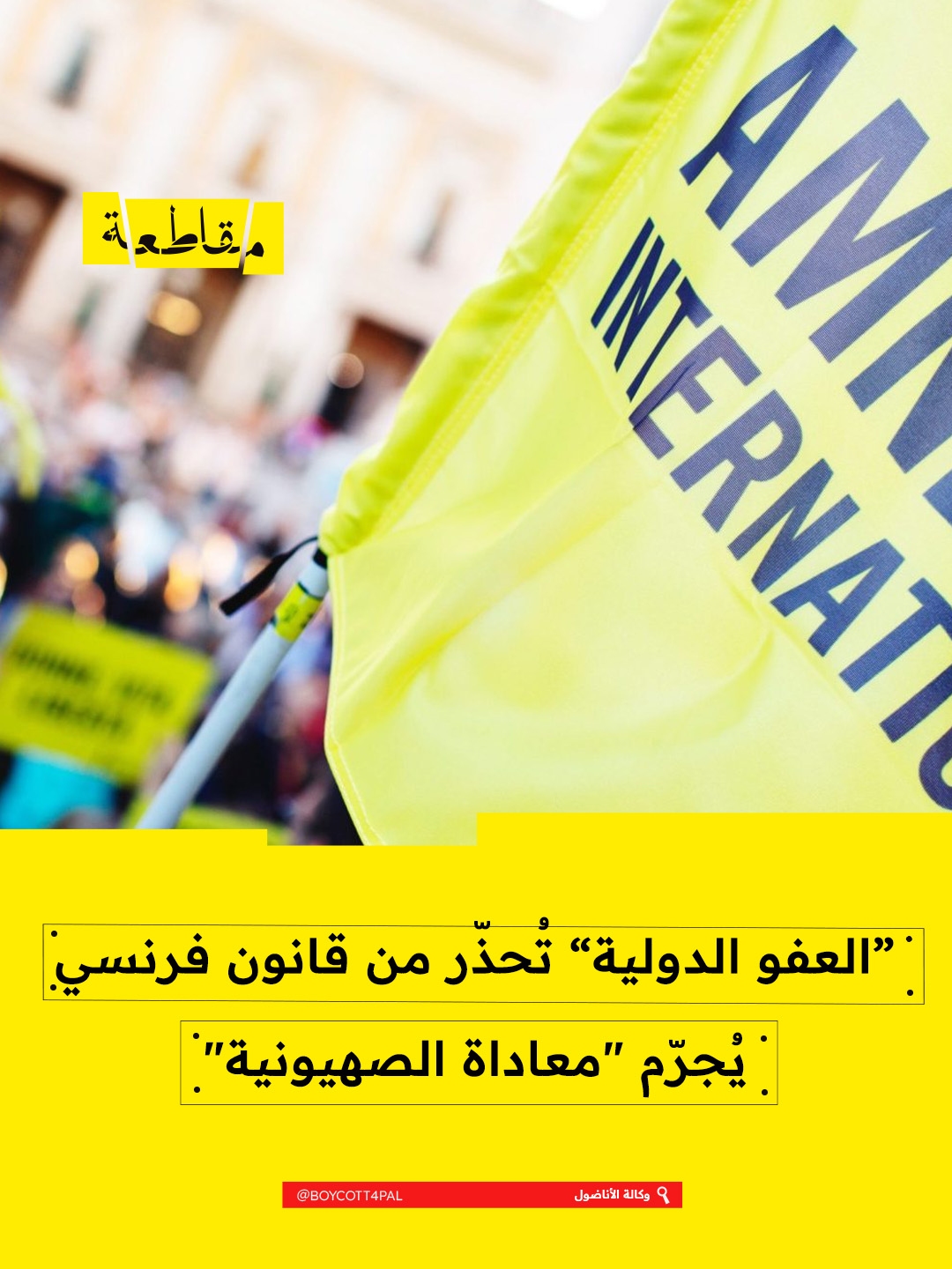 حذرت منظمة العفو الدولية في فرنسا من تداعيات "قانون يادان" المقرّر مناقشته في الجمعية الوطنية الفرنسية غداً الأربعاء، مؤكدة أنه يمهد لتجريم التضامن مع الشعب الفلسطيني.