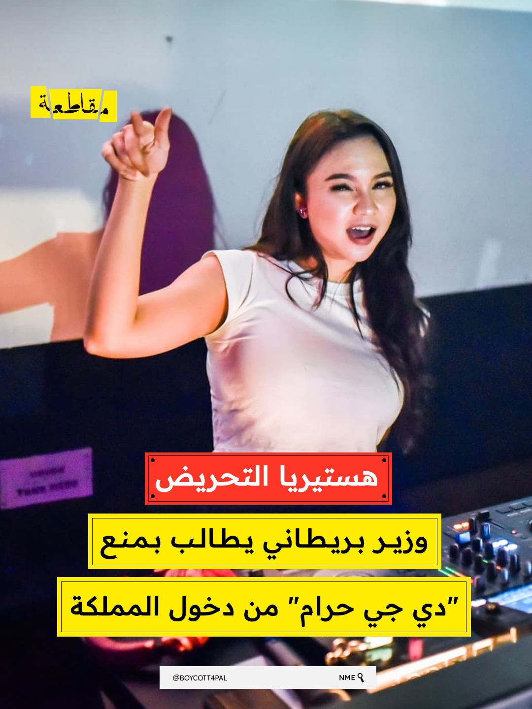 طالب وزير داخلية الظل البريطاني "كريس فيلب" بمنع الفنانة "دي جي حرام" من دخول المملكة المتحدة، على خلفية خطابها الداعم لفلسطين في مهرجان بينالي سيدني بأستراليا.