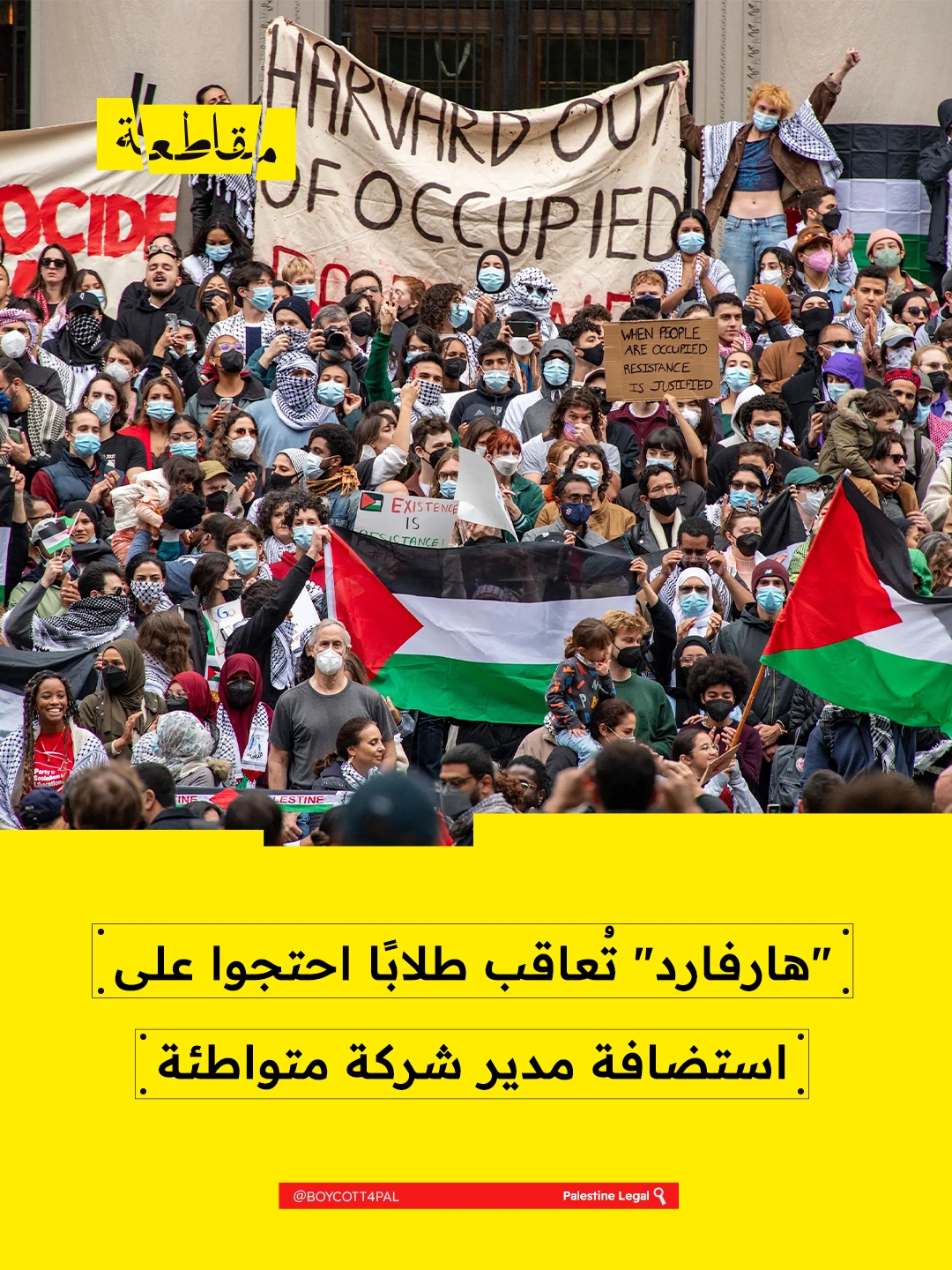 فرضت جامعة "هارفارد" الأمريكية عقوبات انضباطية بحق ثلاثة طلاب تظاهروا ضد استضافة مدير شركة "لوكيهيد مارتن" ، أكبر مورّد للأسلحة المستخدمة في الإبادة الجماعية بغزة.