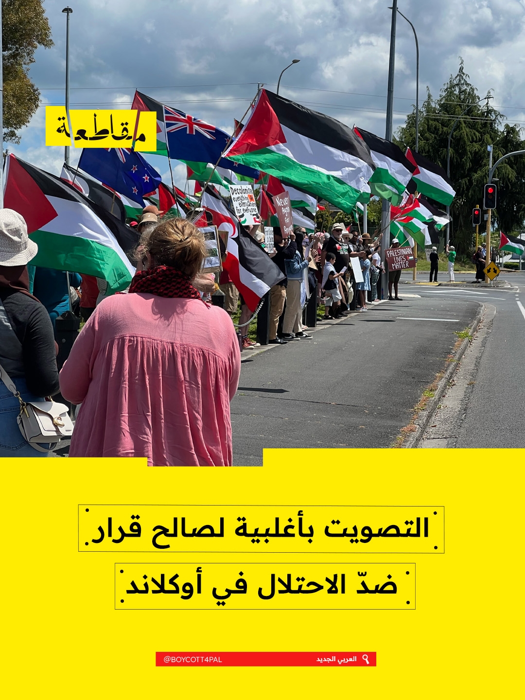 أقرت لجنة السياسات والتخطيط بمجلس مدينة أوكلاند في نيوزيلندا، بأغلبية 14صوتًا، قرارًا يُلزم الموظفين بإعداد تقرير لمراجعة عقود الشركات المتواطئة مع الاحتلال الإسرائيلي.